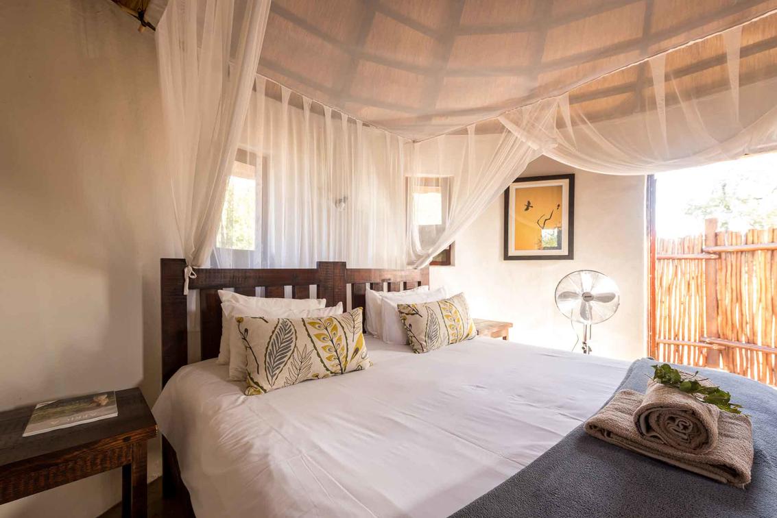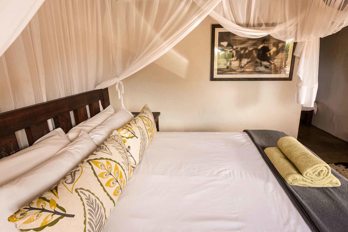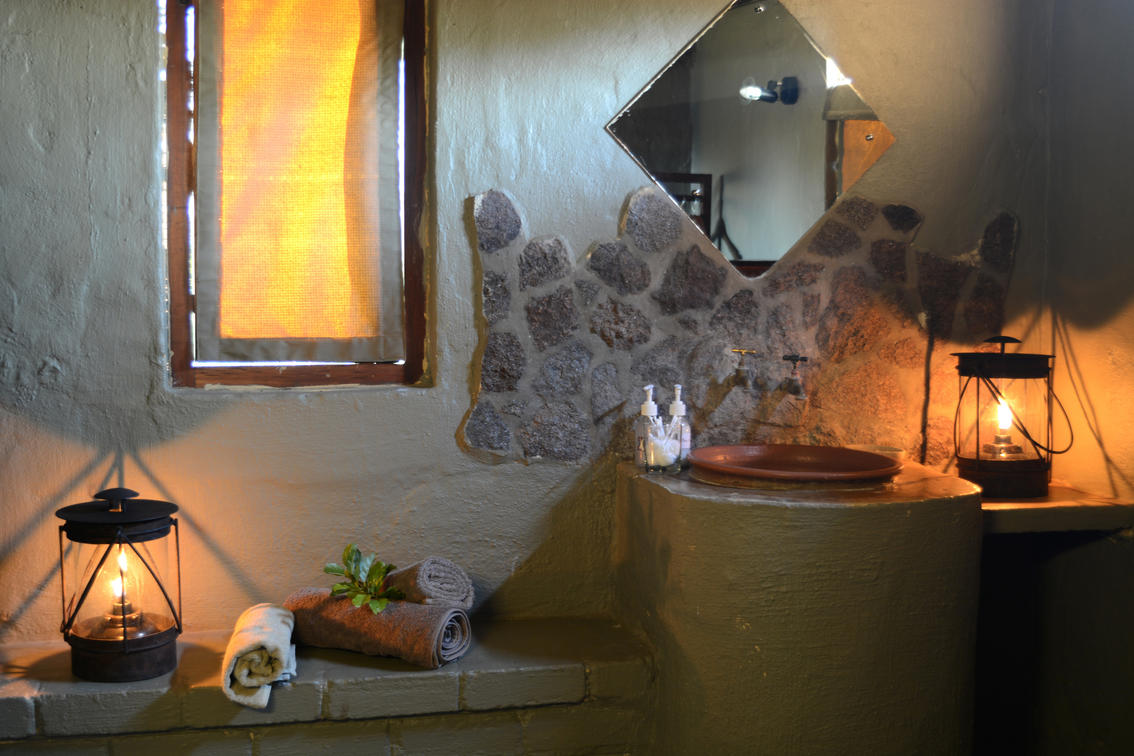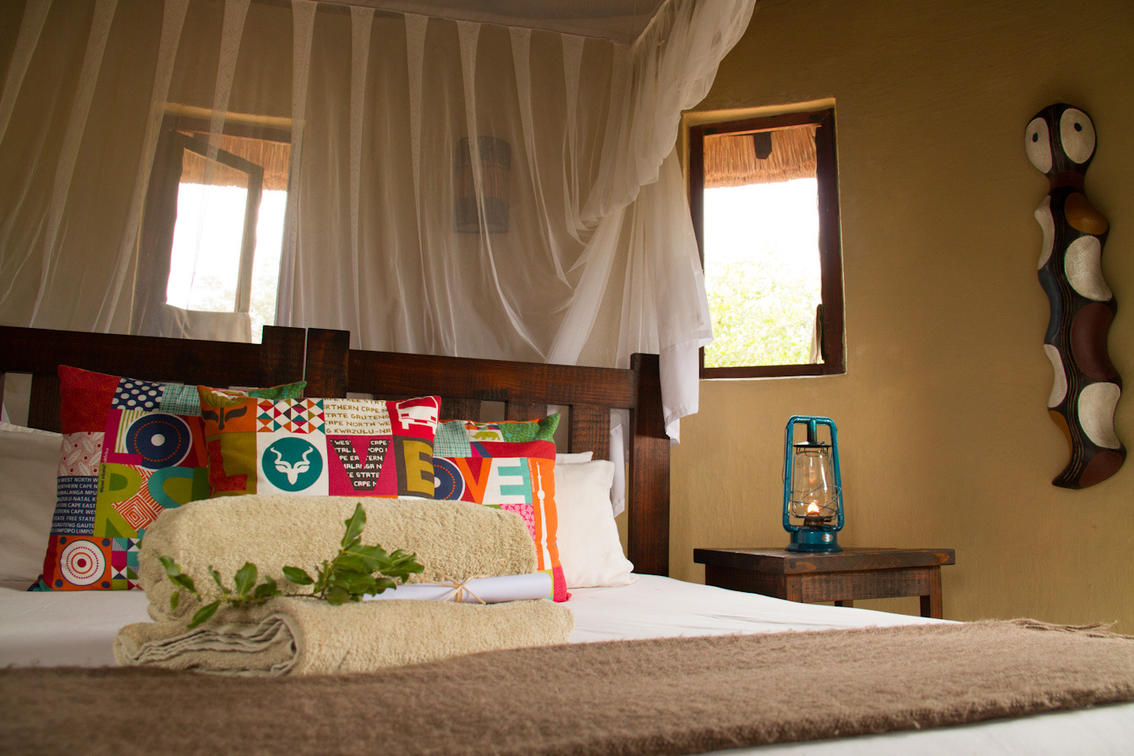 Two of the 5 chalets are subdivided into two rooms and come standard with an en suite bathroom, mosquito nets, a clothing rack, bedside tables, solar powered lamps, and bathroom toiletries.