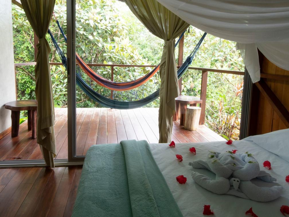 Our superior rooms have been meticulously designed with comfort in mind, paying attention to every detail to offer an exceptional experience. We offer four spacious private cabins, each accommodating up to 4 guests with two large comfortable beds or one large bed and two singles. Additionally, each cabin includes a private terrace, equipped with hammocks, offering stunning panoramic views.