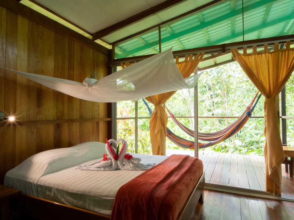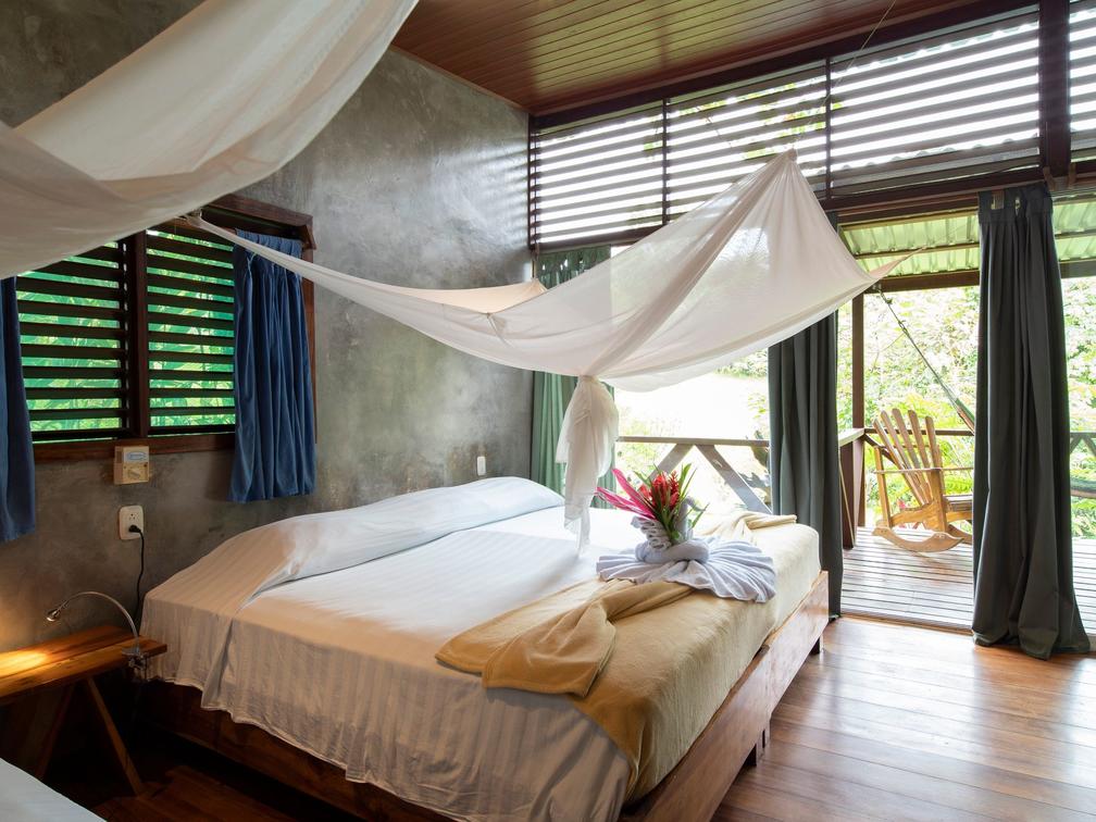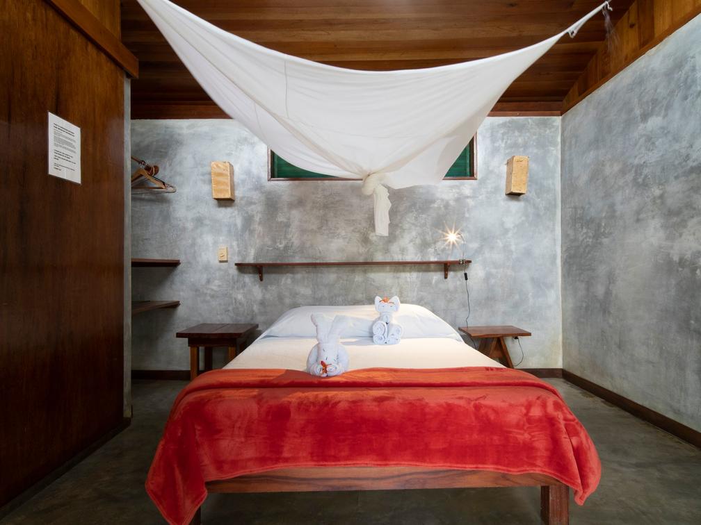 Our four standard rooms are designed in pairs, offering two individual rooms per cabin, each with its own en-suite bathroom and a private terrace with hammocks. These rooms can be connected through the balconies, making them ideal for families or groups of friends looking to enjoy their stay together.