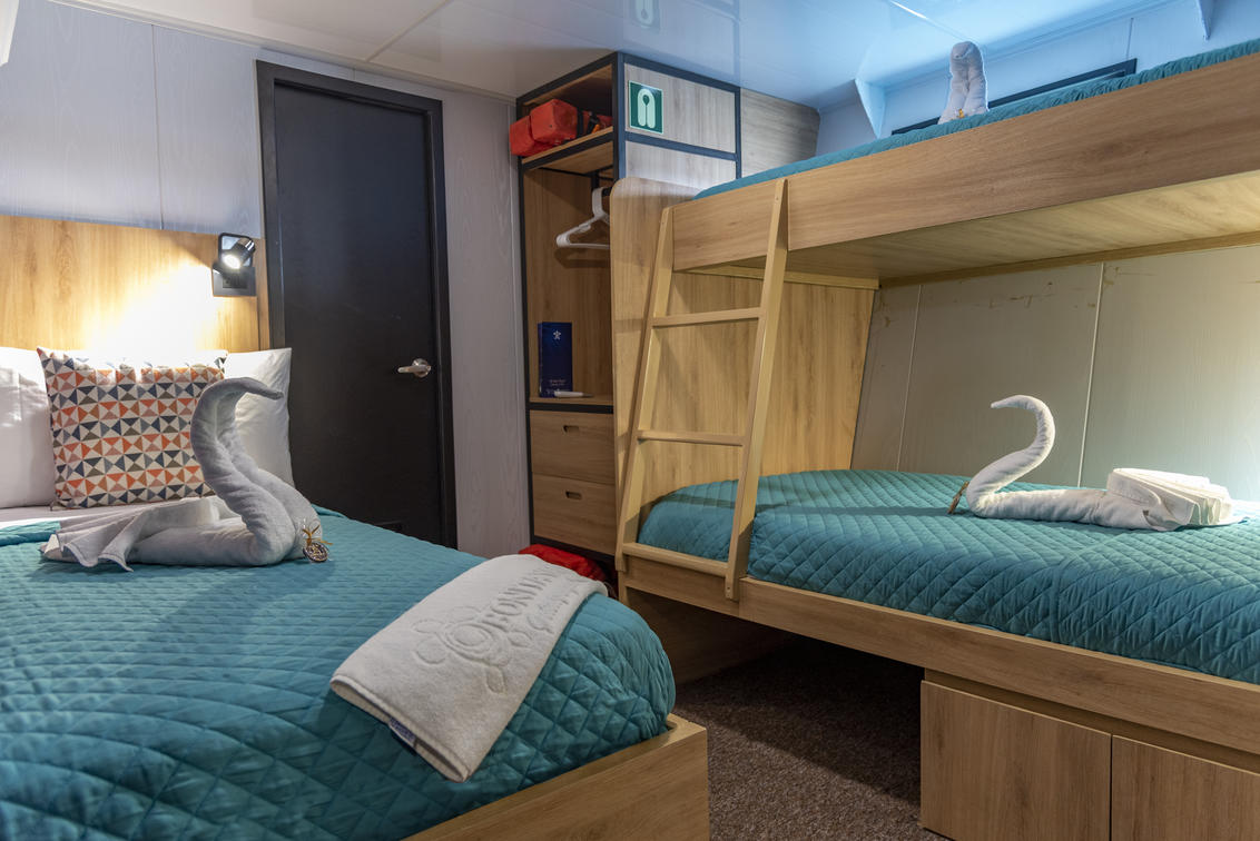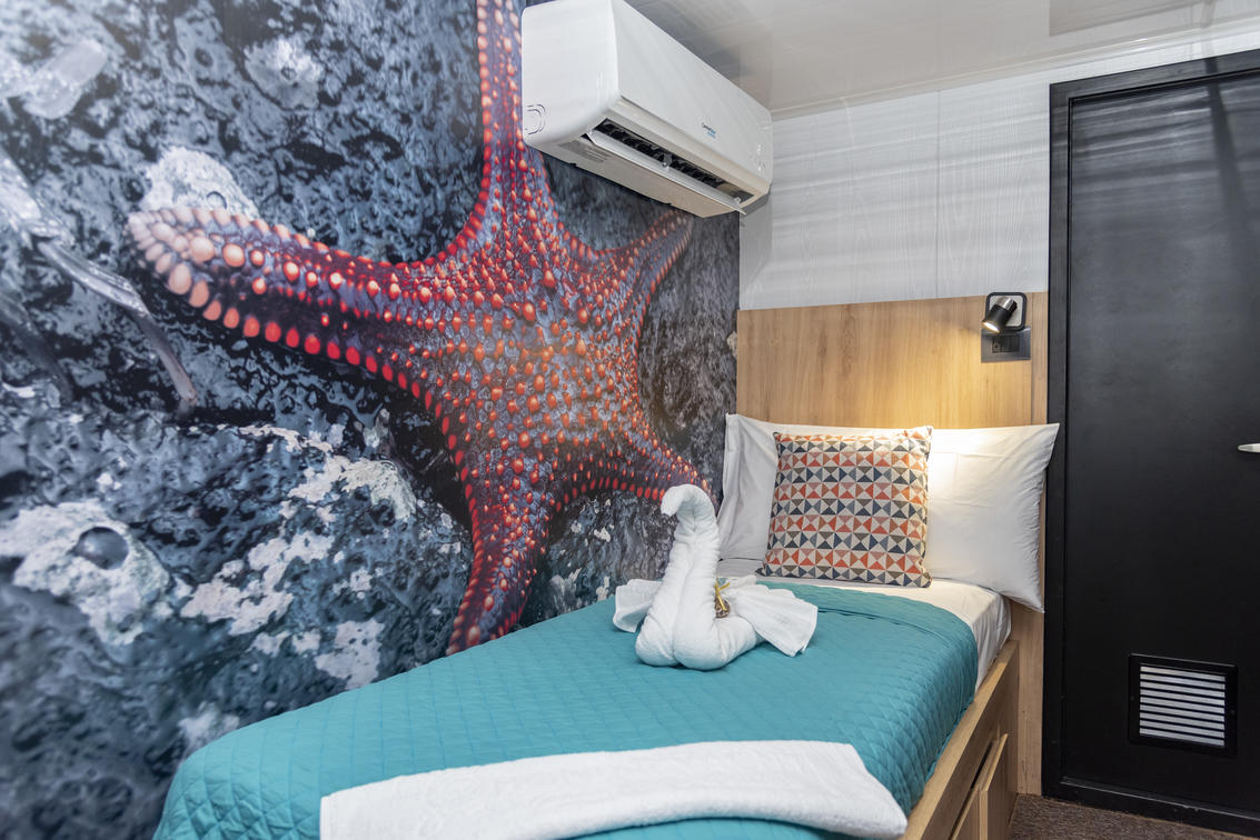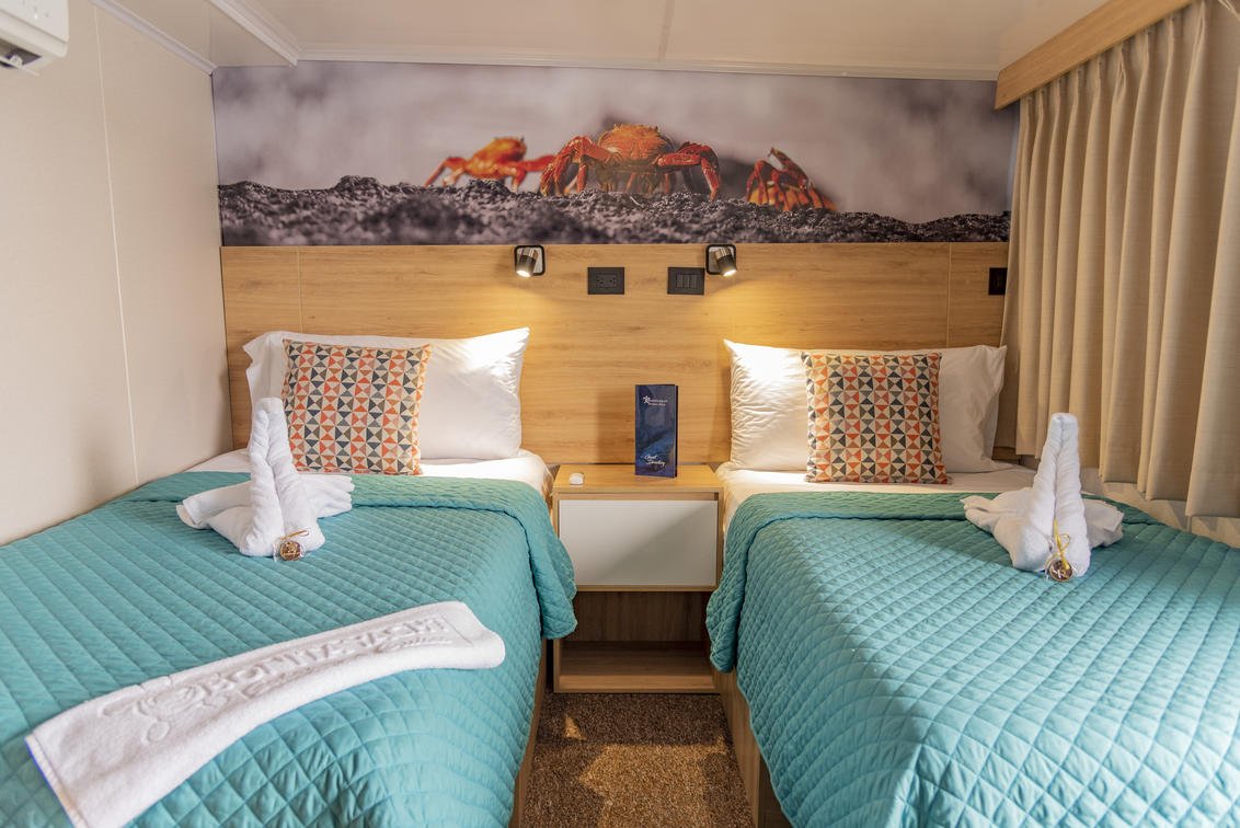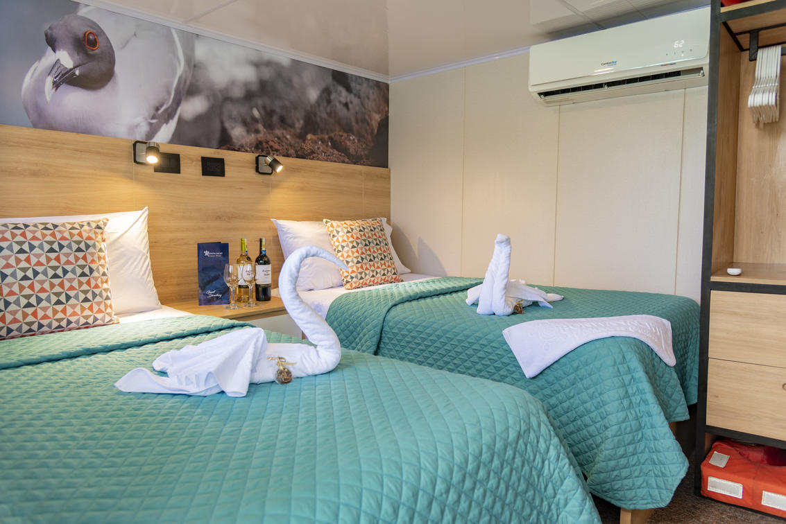 Each cabin includes private bathroom, cold/hot water, air conditioning, telephone for internal communication on board and loudspeaker.