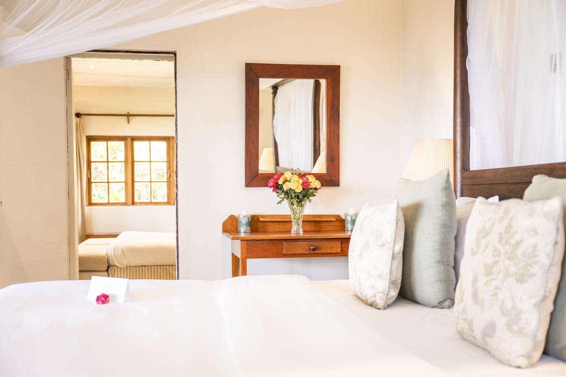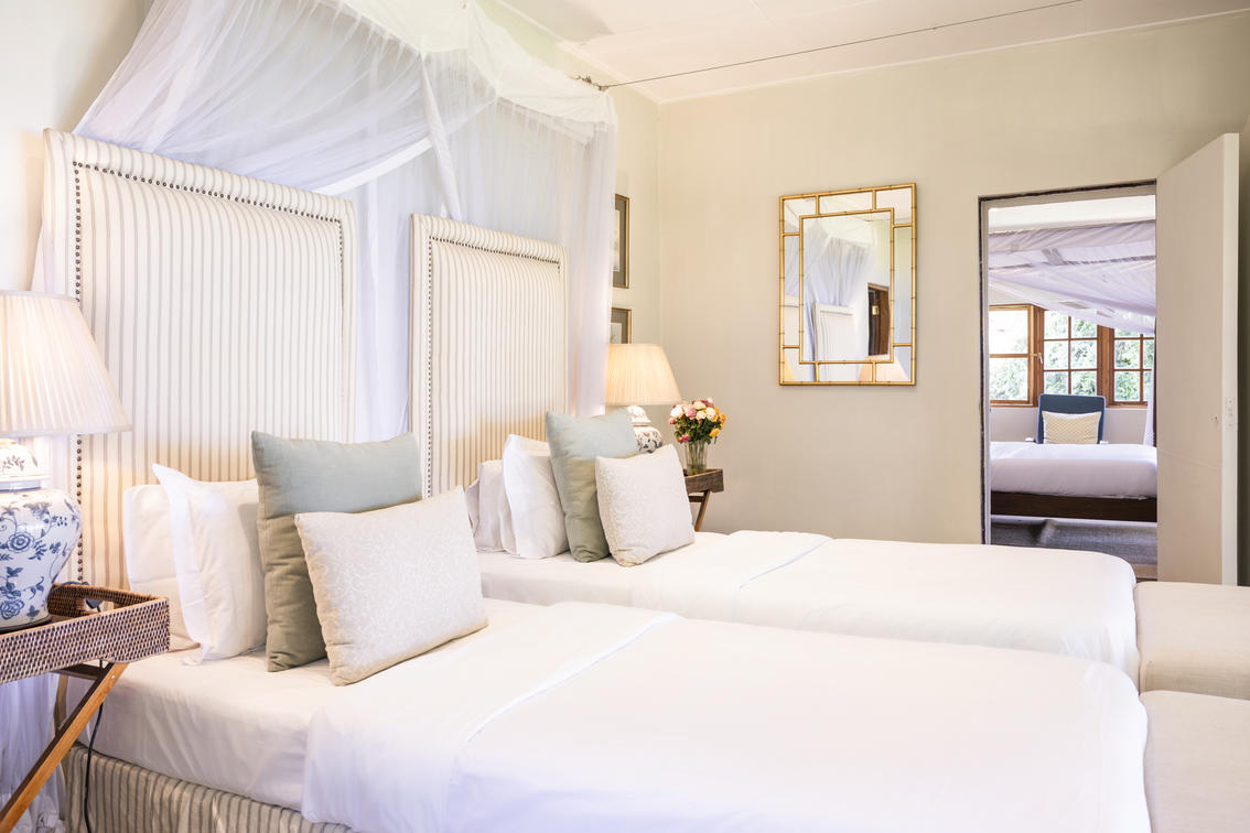 Our family-style accommodation comprises an interconnecting double and twin room (ensuite), enabling you to keep your little ones close at night. Both rooms are ensuite with a rain shower, an alcove bathtub and double vanities; this set up is ideal for families who want to share space and maintain privacy.