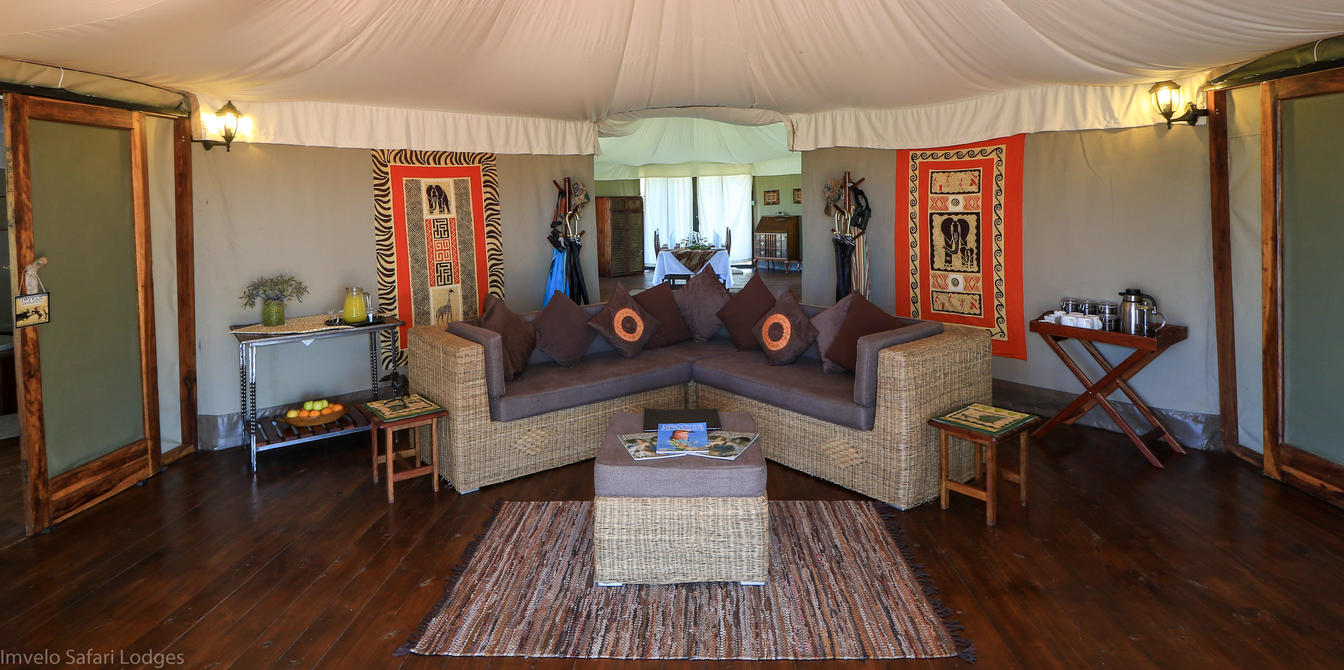 1 x Spurwing Double Tent: 60 sq m ground level tent with kingsize bed, en suite bathroom with shower, overhead fan, spacious seating area, tiled patio with view of the plains.