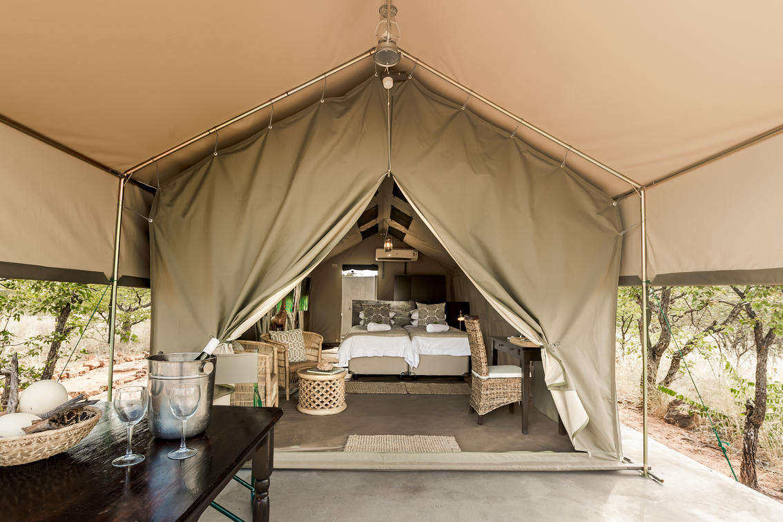 Nestled discreetly on a hillside, each of the 10 Serengeti tent are thoughtfully designed with an en-suite bathroom, complete with a bathtub and outdoor shower, air conditioning, 2 twin beds/ 1 double bed, coffee/tea station, large closet, table, and two chairs inside and out on the patio for their 180ยบ private views. Onsite pool, restaurant and bar. large communal spaces with free wifi.