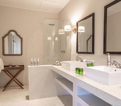 Our family-style accommodation comprises an interconnecting double and twin room (ensuite), enabling you to keep your little ones close at night. Both rooms are ensuite with a rain shower, an alcove bathtub and double vanities; this set up is ideal for families who want to share space and maintain privacy.