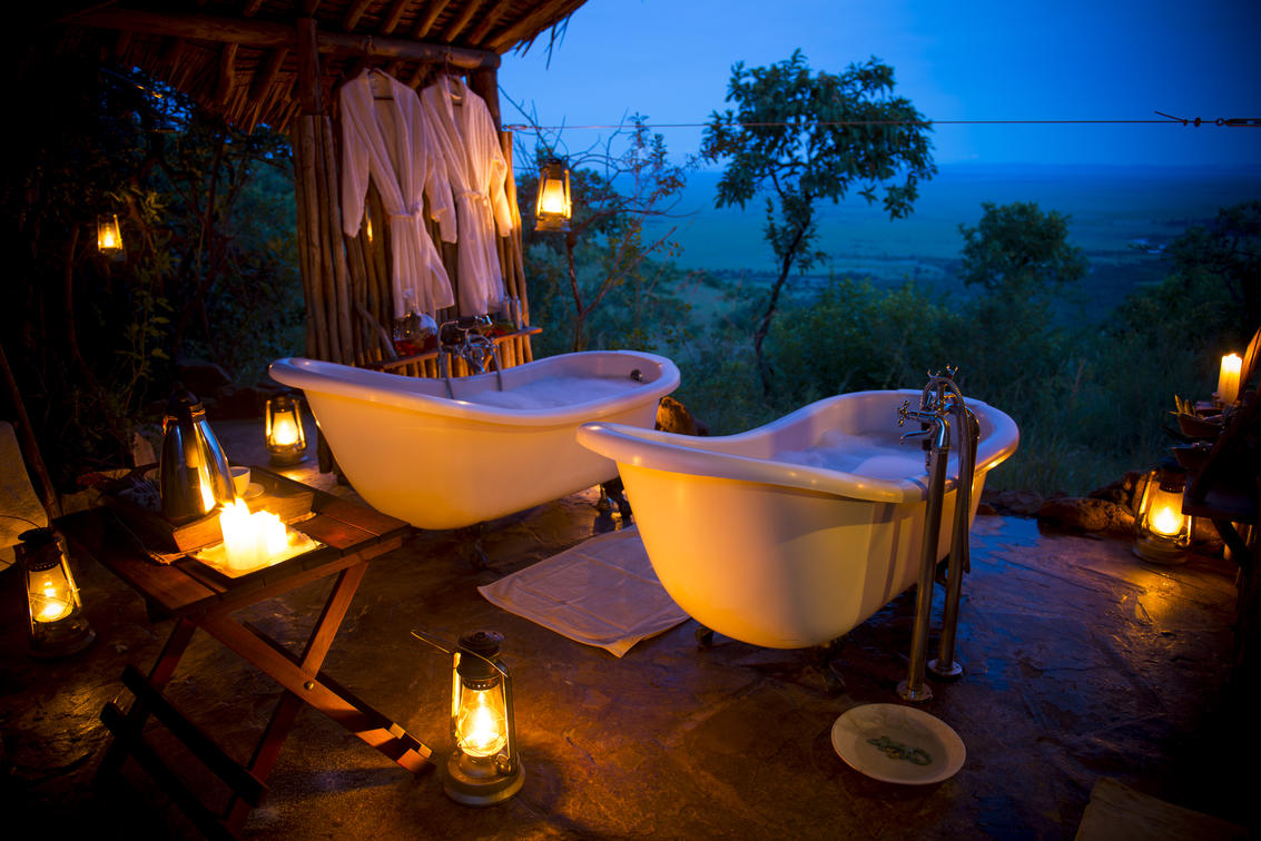 Two large baths that you can relax in with open views to the Mara River and Mara plains from the top of the escarpment. Indulge in a glass of champagne and toast one of the best views in the Masai Mara.