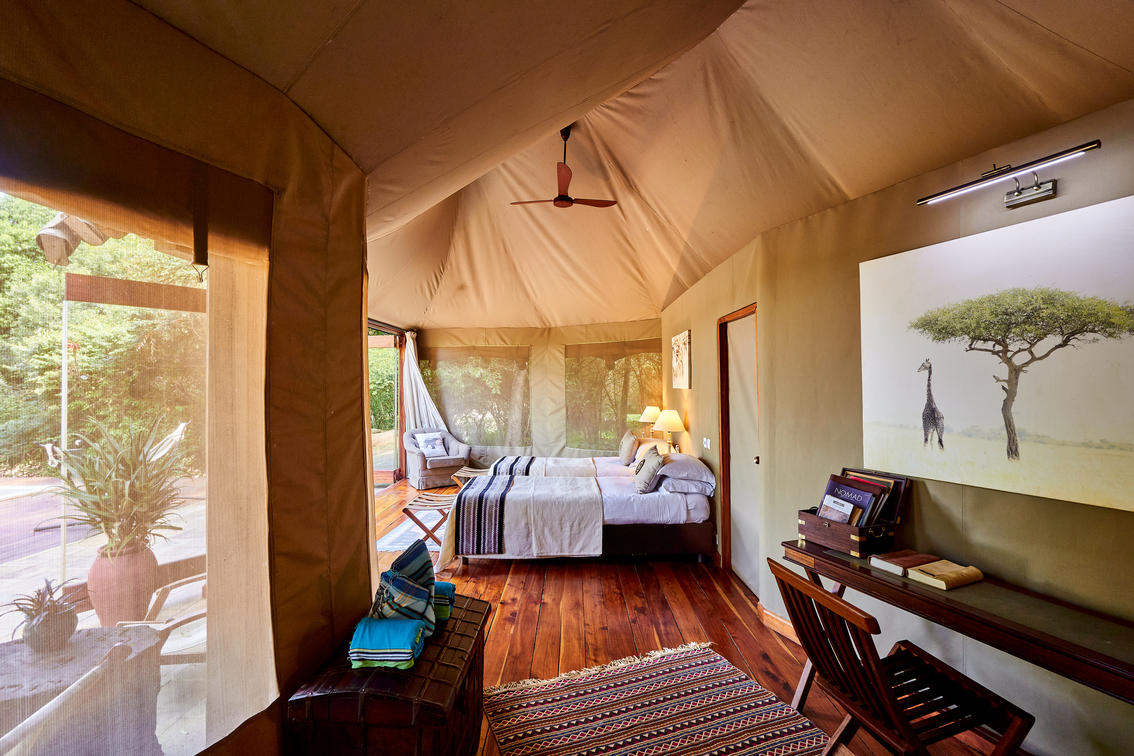 Whilst they are all subtly different in design, they each have the same amenities and tranquil natural surroundings with views across the Sand River and into the Serengeti. The seclusion, sumptuous nature and incredible outlook of all our double tents make them the perfect choice for a honeymoon safari. Floor-to-ceiling glass doors lead out onto either a patio or a wooden deck, with space for intimate star-lit dining if desired. Private plunge pools and wooden decks allow for total relaxation in the soothing green surroundings of nature.