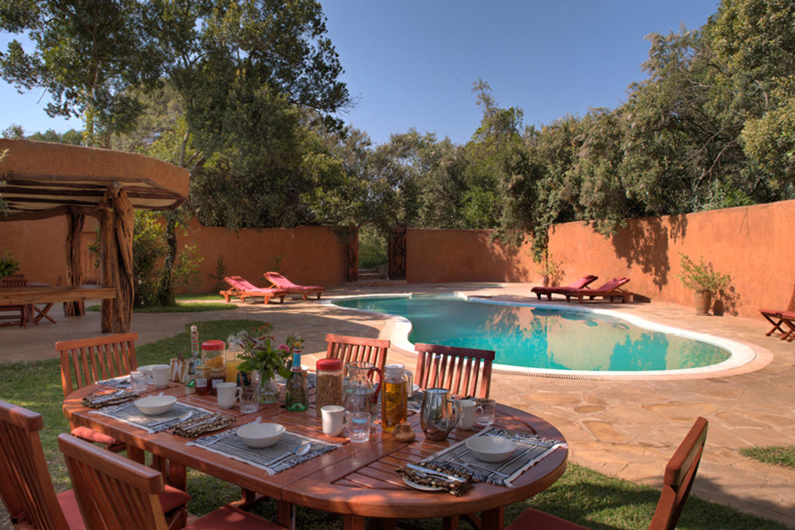 Inside Dik Dik House is an open-plan dining room and lounge with a log fire – perfect for when the temperature takes a slight dip in the evenings. The House has one ensuite bedroom and one twin bedroom with a shared bathroom, a private outdoor verandah and a shared pool area.
