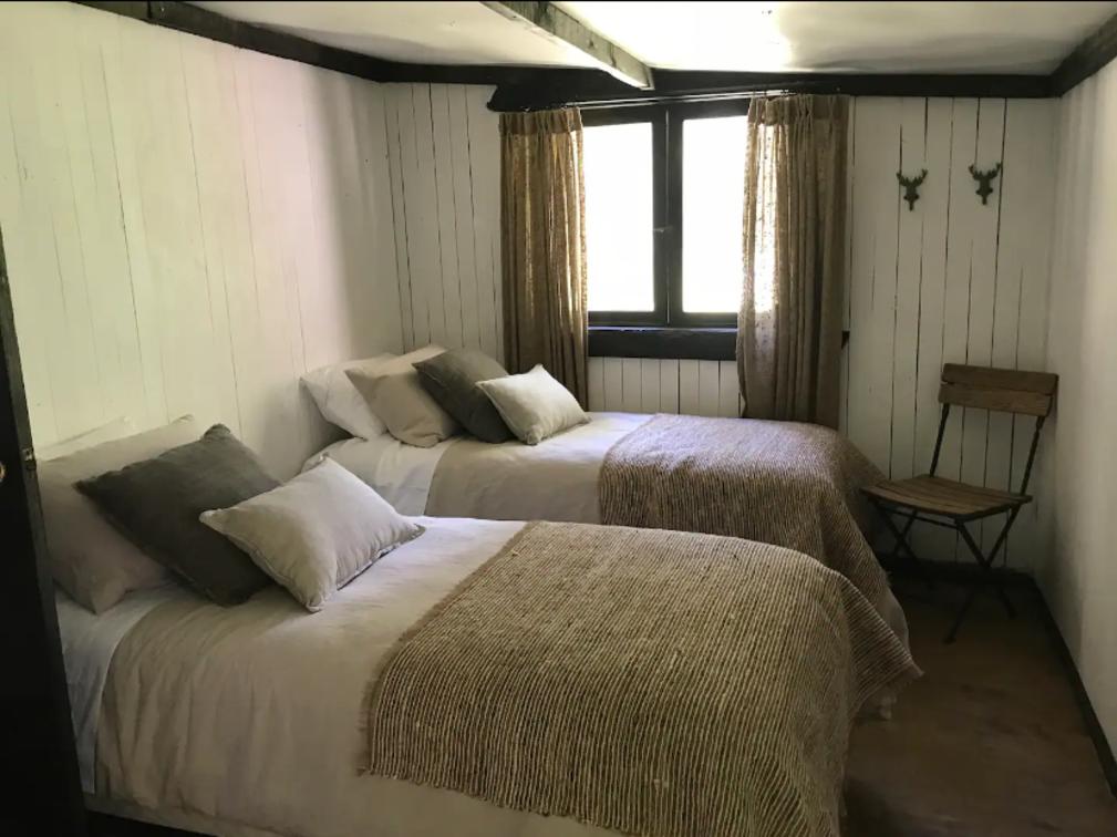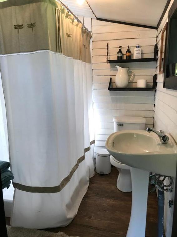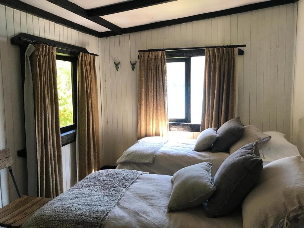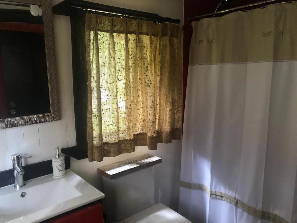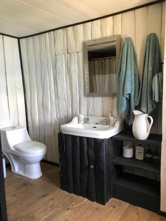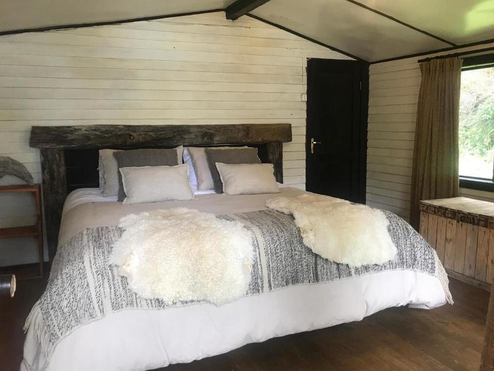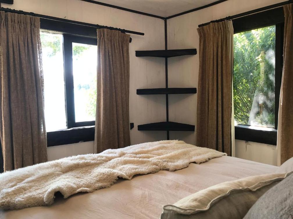 Private cabin with panoramic view of the beltrand lake is composed of a double bed and a bathroom.