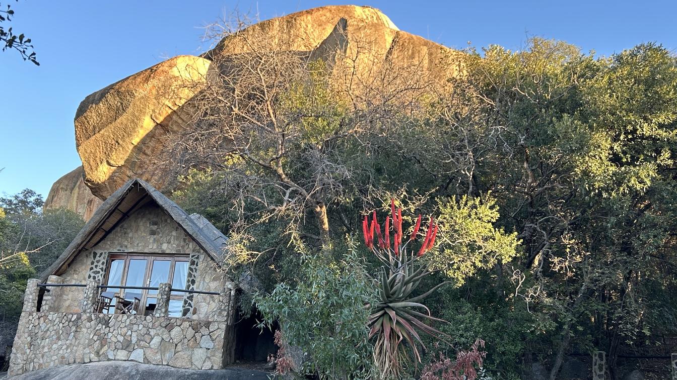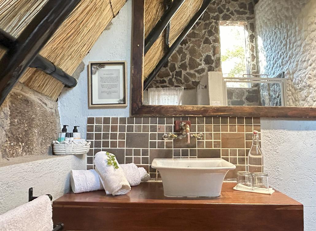 The 30-40sqm stand alone Double/Twin chalets are 'A' framed granite under thatch rooms that are nestled within the granite rocks on top of a Kopje (Hill) overlooking the majestic Matopos National Park. 100% Egyptian cotton linen and pillow cases to add to your comfort. Overhead fan to cool in the summer and Aranda Faux minx blanket to keep you warm and snug in the winter months.