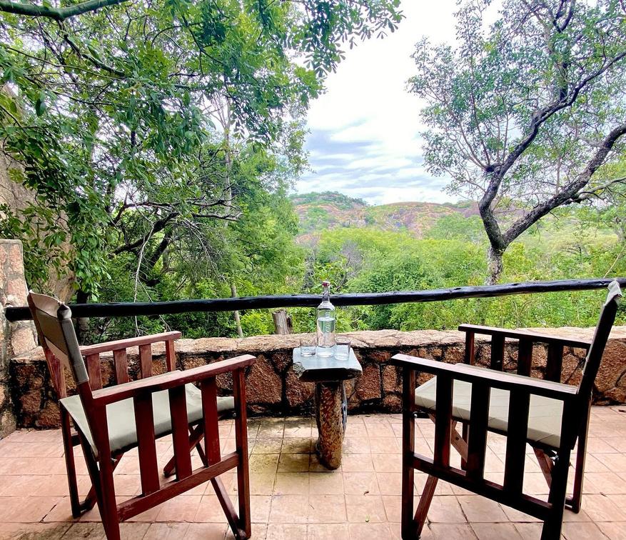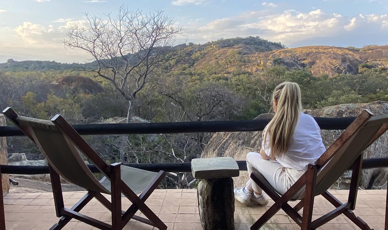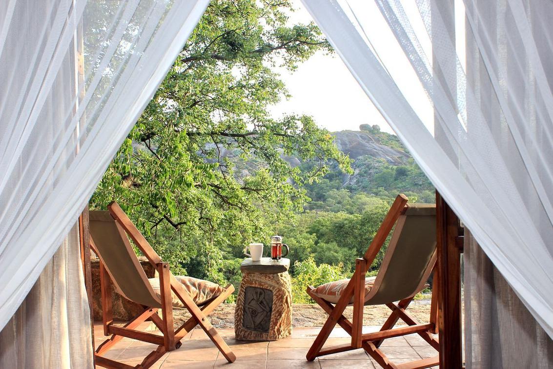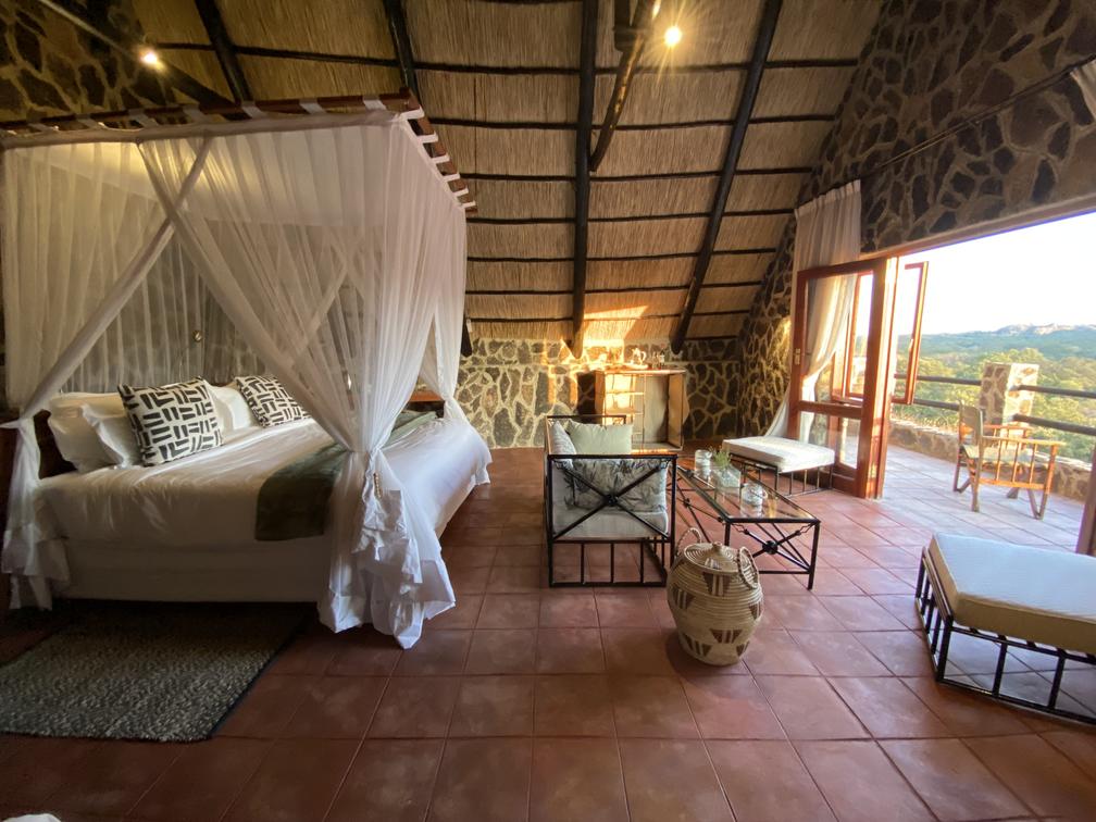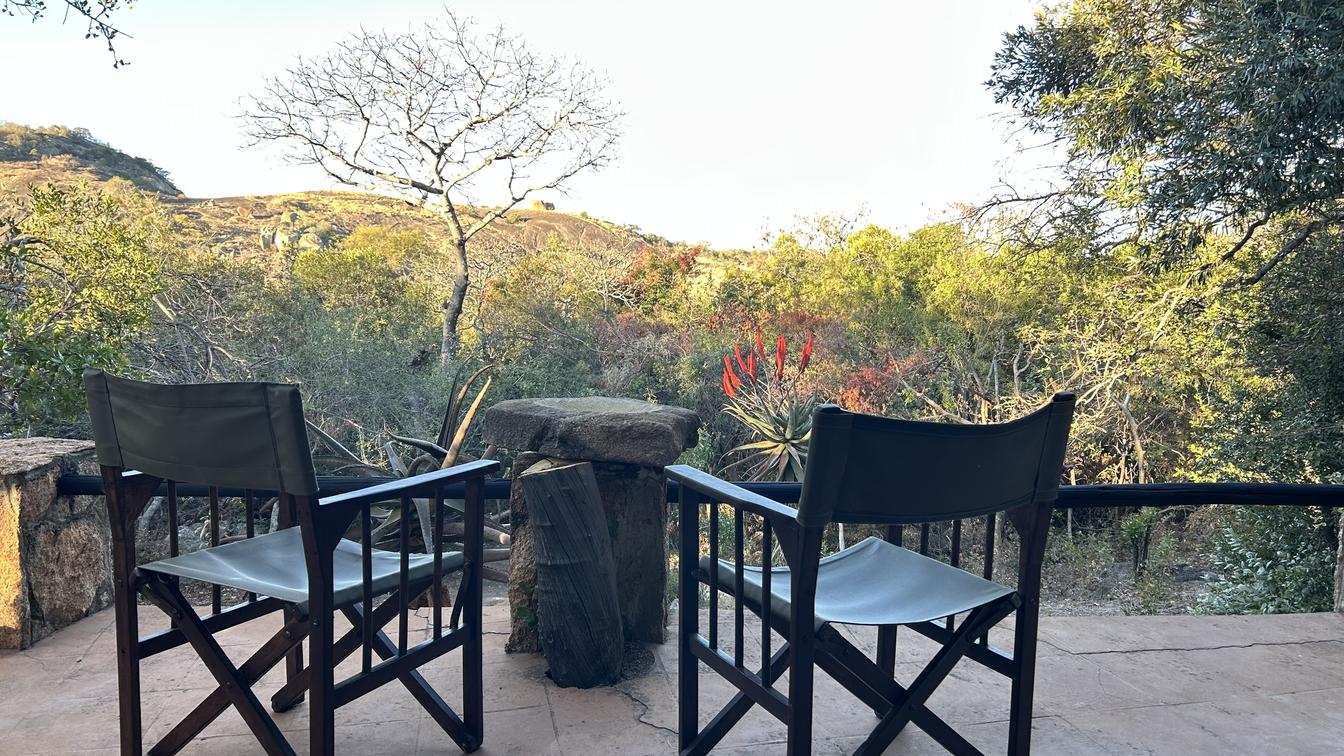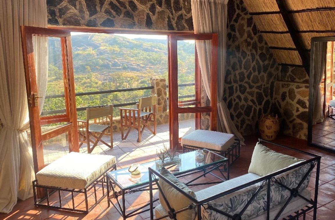 Doors open onto a private deck with spectacular views overlooking Matopos National Park.