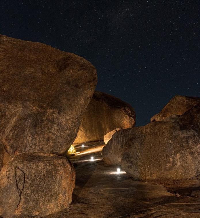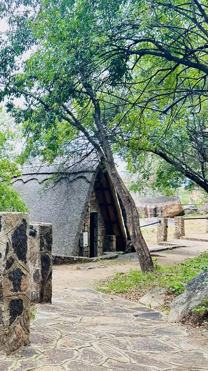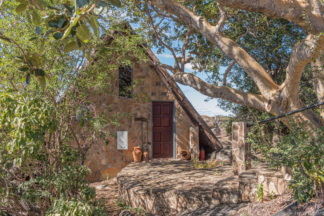 The 45qm stand alone x1 Family room is an 'A' framed granite under thatch room that are nestled within the granite rocks on top of a Kopje (Hill) overlooking the majestic Matopos National Park. 100% Egyptian cotton linen and pillow cases to add to your comfort. Overhead fan to cool in the summer and Aranda Faux minx blanket to keep you warm and snug in the winter months.