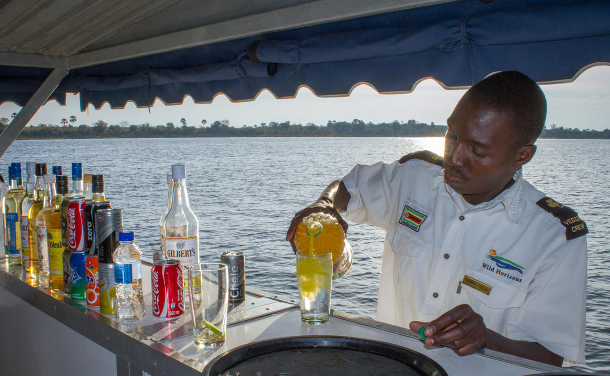 After the game drive, guests will enjoy a selection of cocktails and canapes on the rim of the Batoka Gorge, where the Zambezi Rapids rage 120 meters below. This hidden gem is the perfect place to enjoy a sundowner.