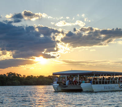 African sunsets reflect the colours of the imagination- dusky gold, pearly pinks, and vibrant purples spill into the sky and the Zambezi River acts as a mirror to the brilliant beauty above it. The sunset cruise catches the last moments of the day and the first moments of the evening, when owls emerge, crocodiles slip into the water and tiny silver stars blink in the sky. The sunset cruise is one of the most popular activities in Victoria Falls.