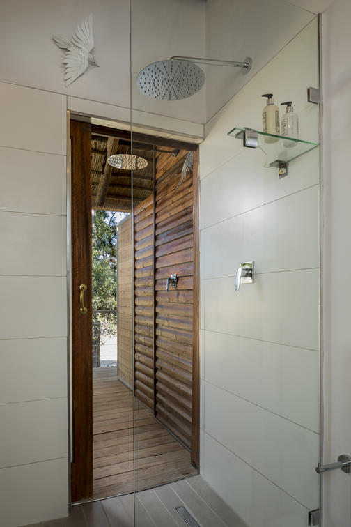 Safari Suite comes complete with a fully stocked mini bar, private garden, separate lounge and a large outdoor deck with a plunge pool and indoor/outdoor shower offering views of the Mabrak riverbed, bush
