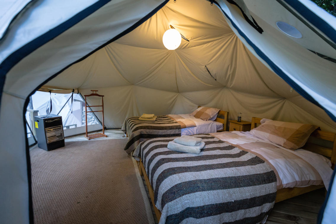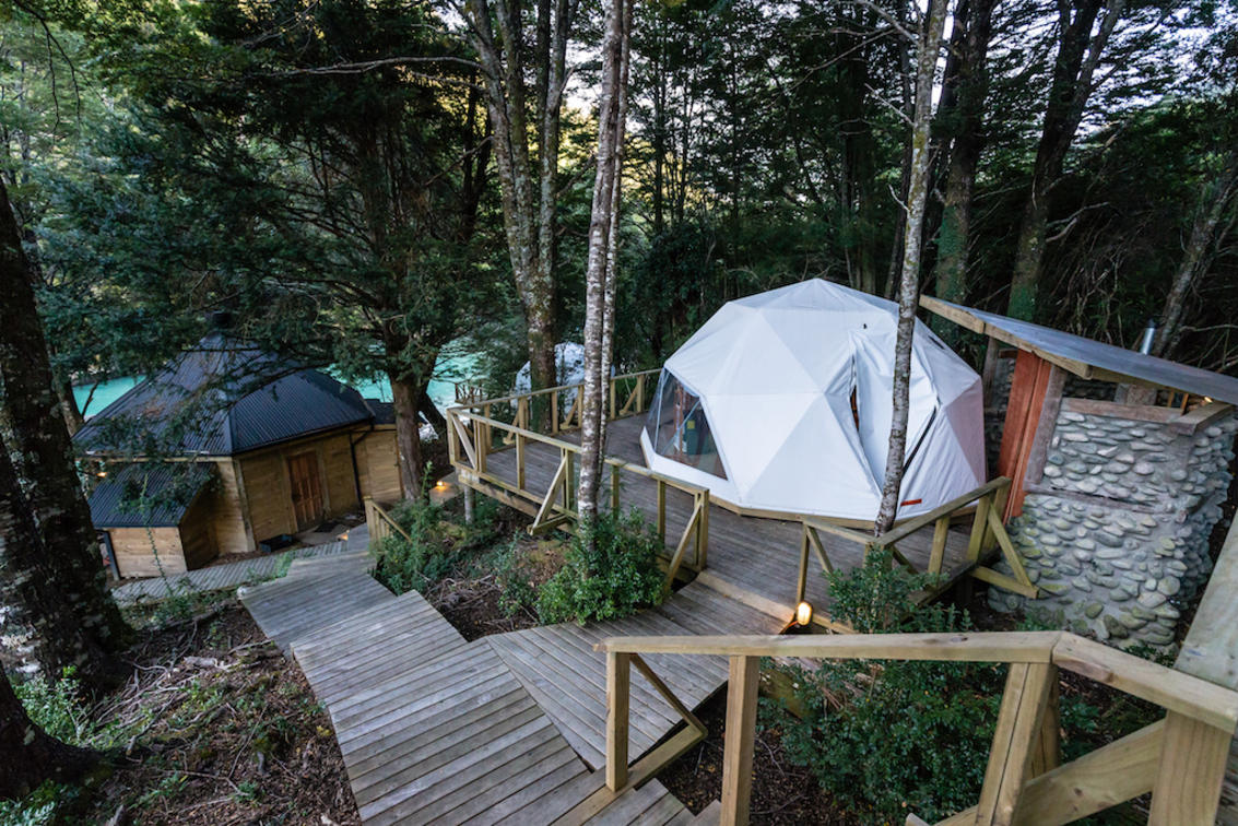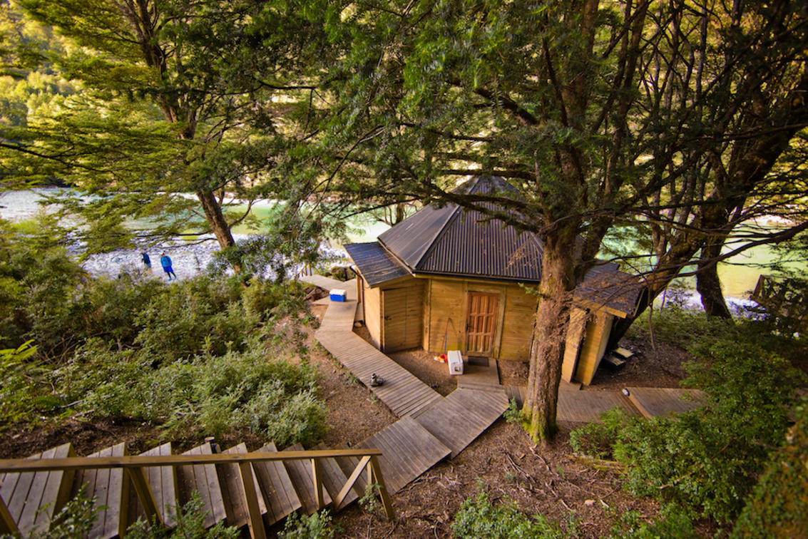 The out camps(Palena and Temple) are set up for four rods at a time with accommodation in two fixed tents which offer seriously comfortable bankside accommodation with en suite, outside bathrooms. You go out with just your team, your guides and one or two Chilean helpers for an overnight or a two night stay.