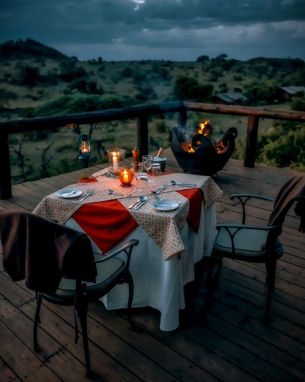 The dining experience at Serengeti Migration Camp is on a separate deck overlooking the Ndasiata Hills and the Grumeti River. Dine under canvas or al-fresco under the brilliant African skies.