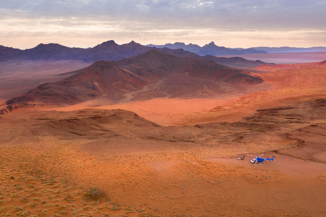 Take off from near &Beyond Sossusvlei Desert Lodge and soar over the vast expanse of the desert for a 45 min helicopter flight. Hover over jagged mountain tops that emerge from the shifting Namib dunes flying over a landscape that has remained unchanged for millions of years.