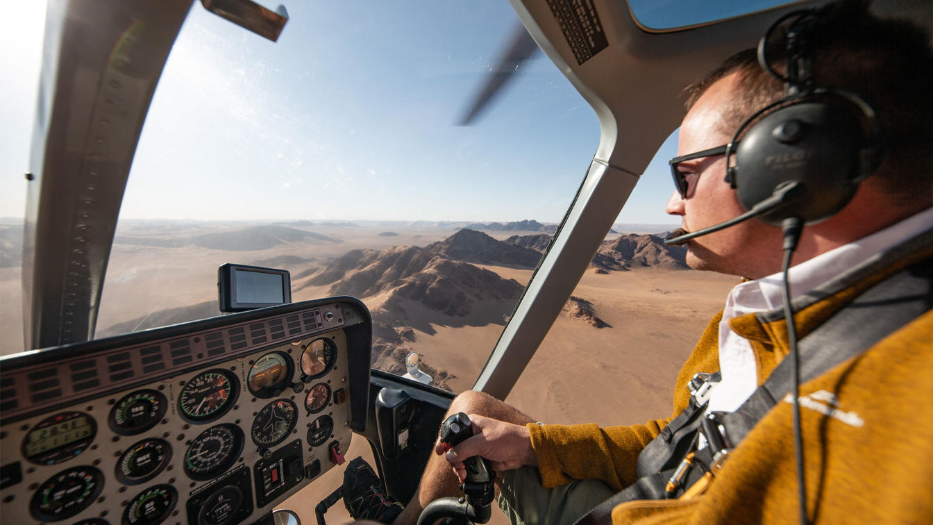 Take off from nearby the lodge and soar over the vast expanse of the desert for an approximately 60 min helicopter flight. Hover over jagged mountain tops that emerge from the iconic Namib dunes, white mineral pans, rocky outcrops and unique fauna and flora. Be captivated as you fly over a landscape that has remained unchanged for millions of years.