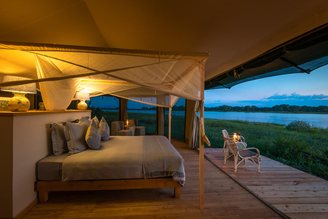 Modern safari tents which are all en-suite, each with a bathtub and an outdoor shower. The eco-friendly evening breeze air conditioning (state of the art and environment friendly cooling system for the bed within the mosquito net), adds to the comforts of this intimate camp. With all the usual comforts of a Robin Pope Safari camp, Kuthengo maintains a rustic charm, complemented by stunning views which are best appreciated from your private deck with a cold sundowner in hand, admiring the herds of waterbuck that frequent the camp area, milling about in the evening glow.