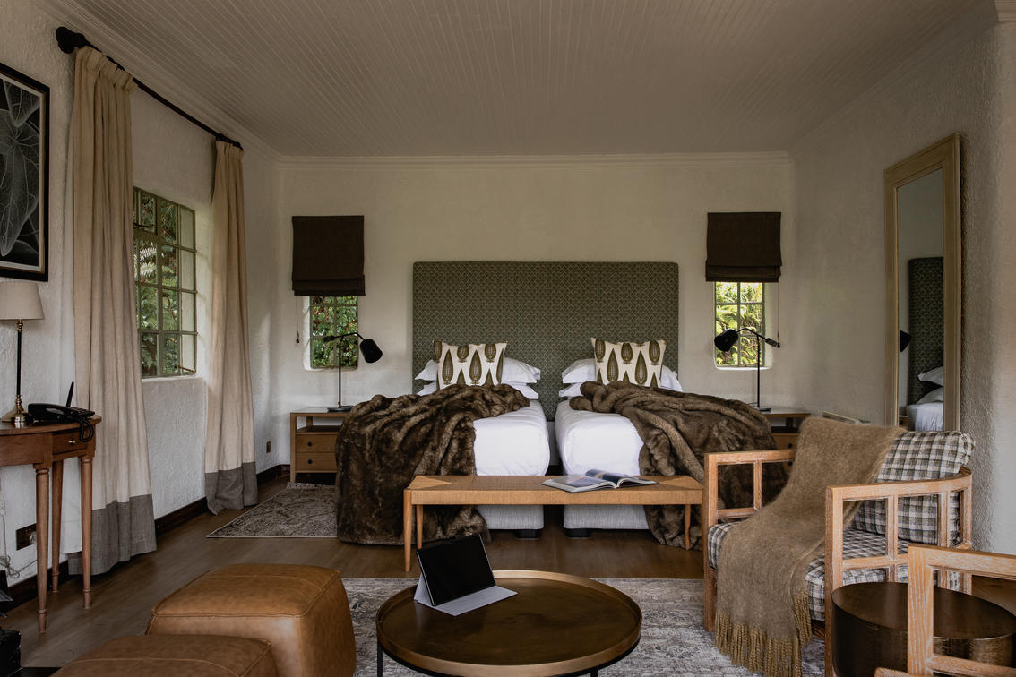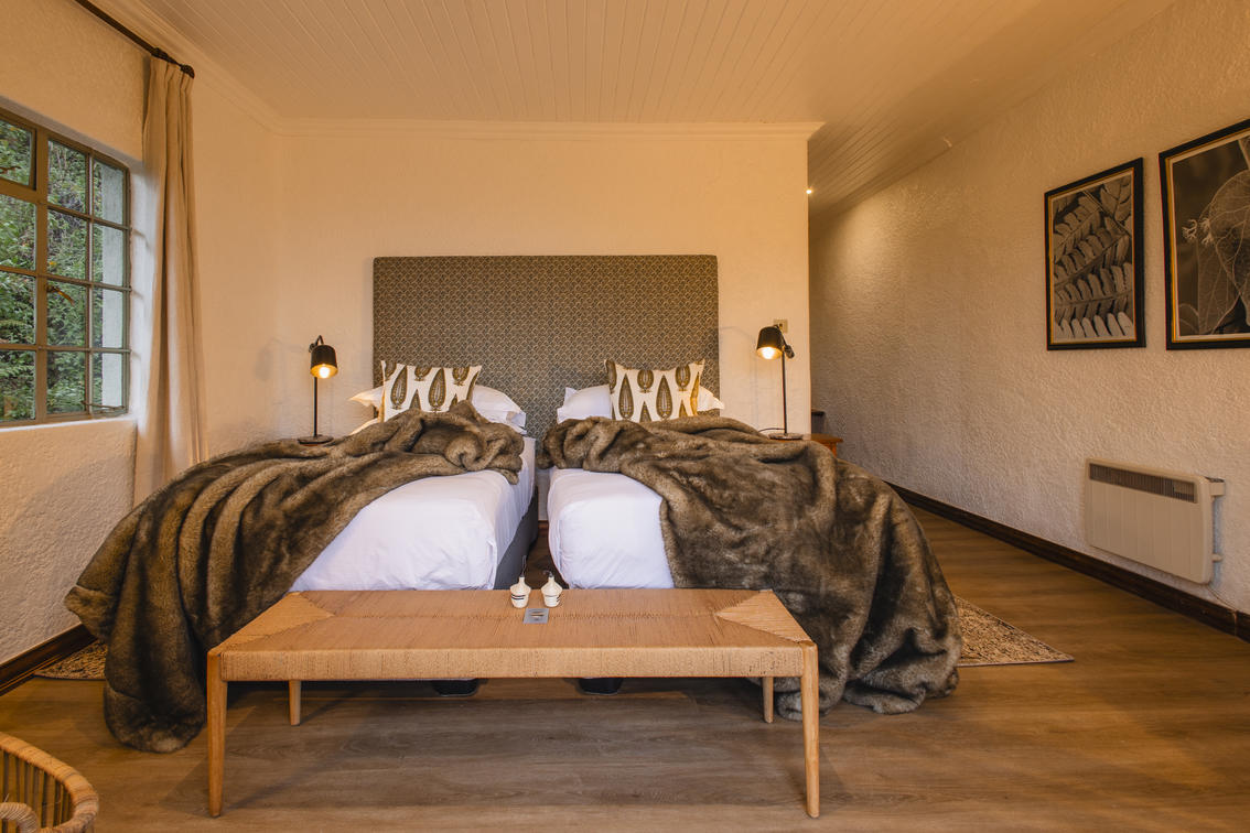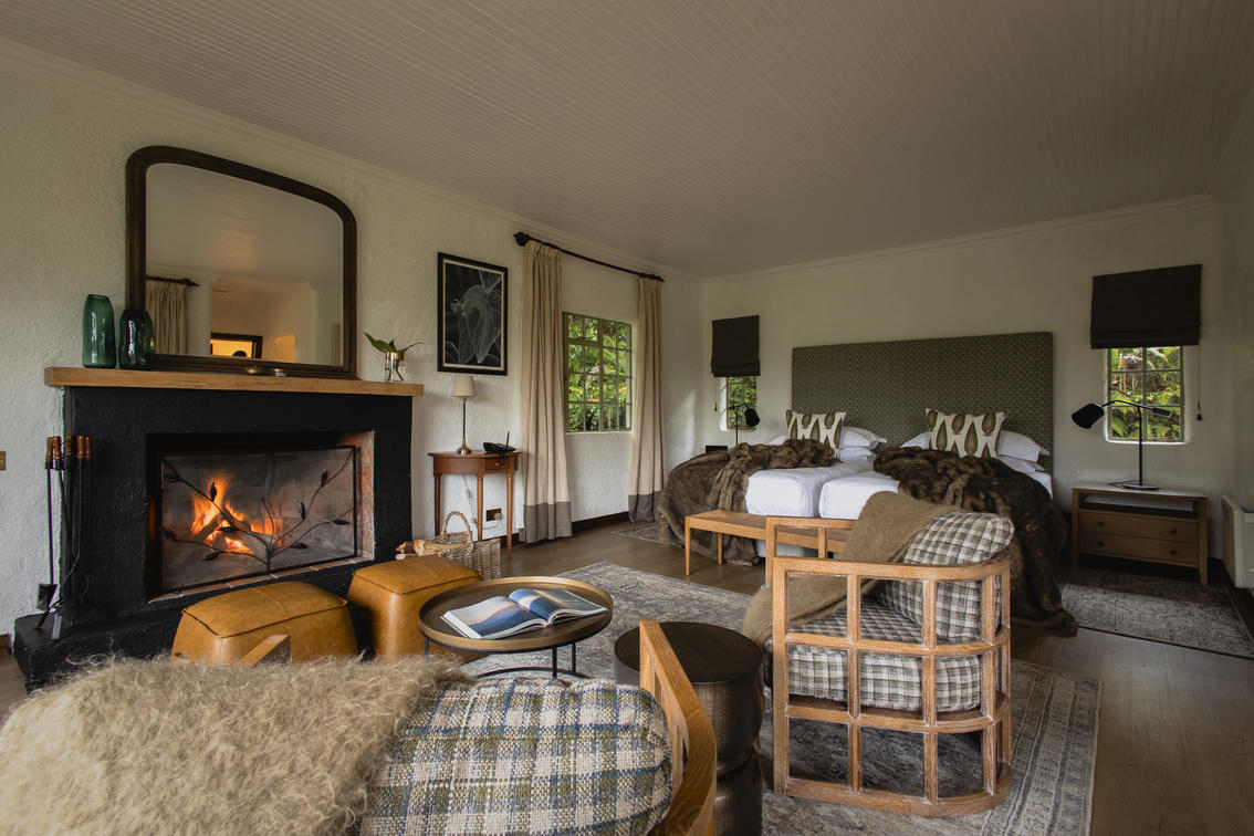 Sabyinyo offers two extra-spacious luxury suites. Each features an expansive sitting area, two verandas with impressive views and en-suite bathroom (shower and bath). Log fires are lit every night, and space heaters beside the large king-sized, four-poster bed adds warmth and ambiance. The suites are perfect for couples and honeymooners.