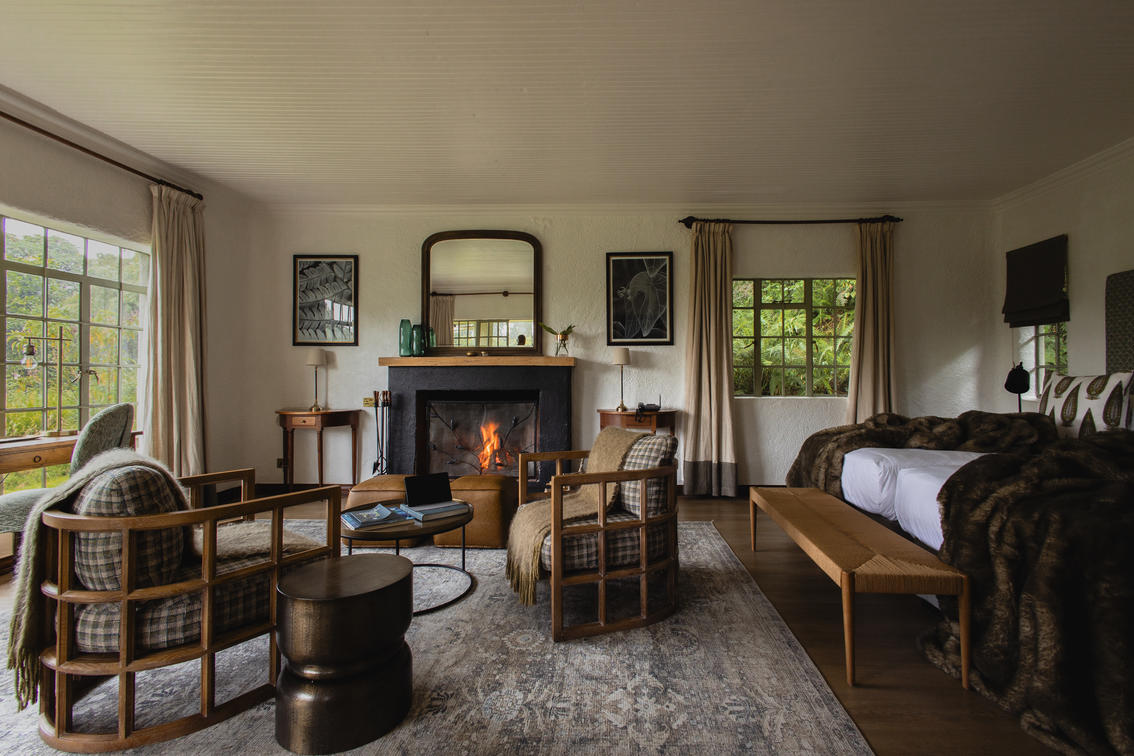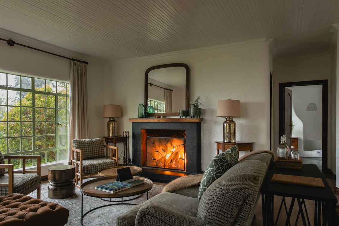 Sabyinyo has six charming cottages with Rwandese terracotta tile roofs. Each has a spacious sitting area, a fireplace and extra-roomy en-suite bathroom. Space heaters by the beds supplement the log fire, to create a haven of warmth. Outdoors, a spacious veranda invites you to relax and enjoy the bird-filled gardens.
