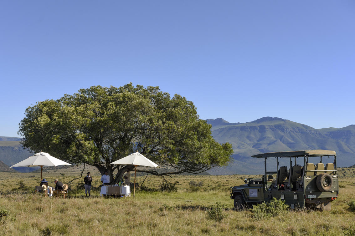 Not forgetting human creature comforts, each drive takes a break mid safari, where guests can tuck in to a picnic basket filled with hot coffee, tea, rusks and other delicious snack delights. In the colder winter months guests are dispatched with hot water bottles, blankets and a dash of liqueur to warm their way.