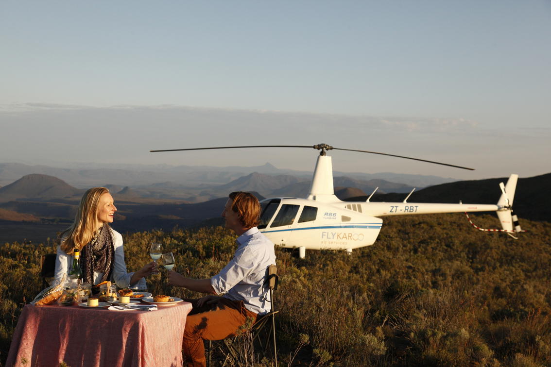 - Scenic flight over the reserve to one of the highest points on the Sneeuberg Mountain Range with a picnic on top of the mountain included. Duration 25 min. Price R 11 150 for 1-4 pax