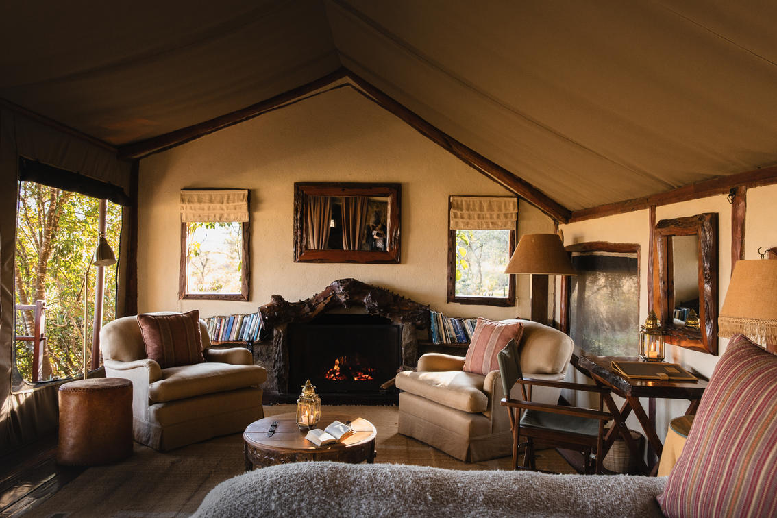 Each tent has an en-suite bathroom, wooden floors, a sitting area with a fireplace and private verandah.