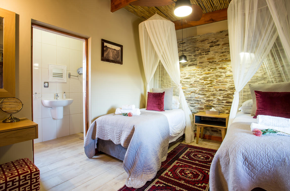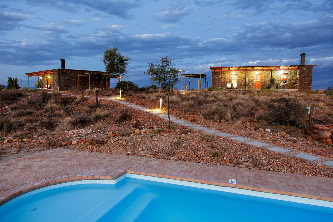 Private cottages, 3 min drive from the main house via gravel road, build from rock. Private with own fireplace and stunning views.