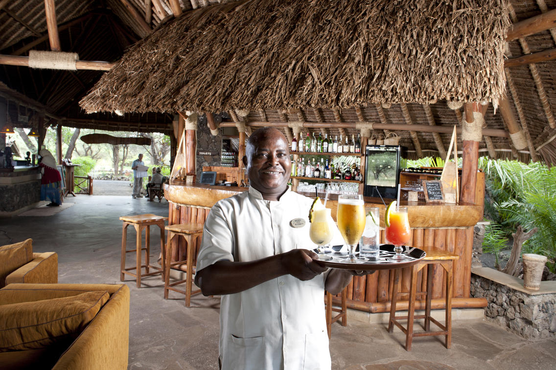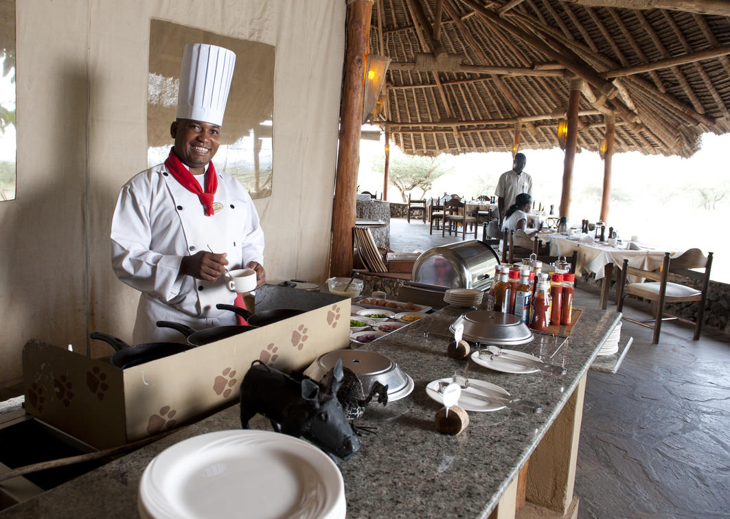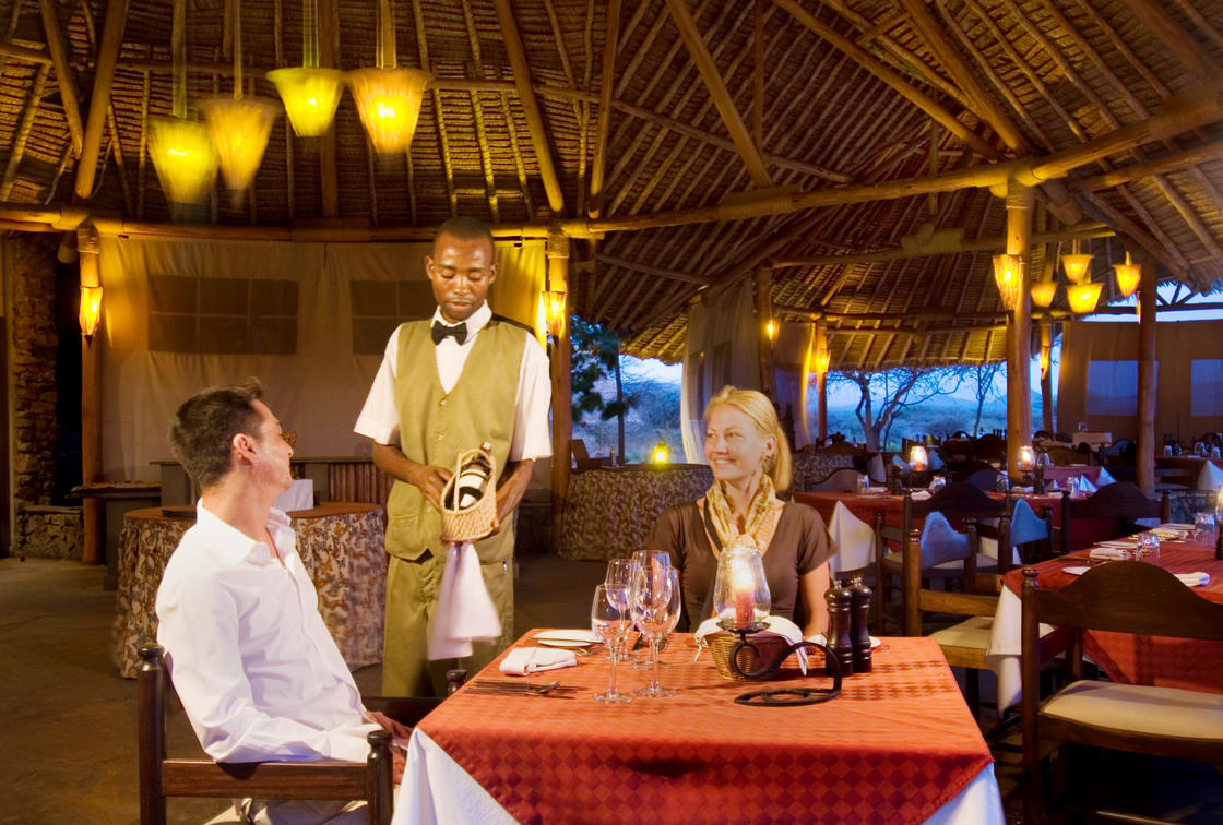 We serve breakfast buffet as well as à la carte lunch and dinner in our "Out of Africa" Restaurant. The chef's speciality is marinated meat from the Kenyan highlands served on hot stone or as a fondue, in addition we serve fresh vegetables, salad and herbs. Extraordinary wines complete the culinary experience amidst the bush. We also invite our guests to enjoy the wonderful African atmosphere during a private bush breakfast or bush lunch or to admire the beautiful sunset at Poacher's Lookout with sparkling wine and canapés (surcharge).