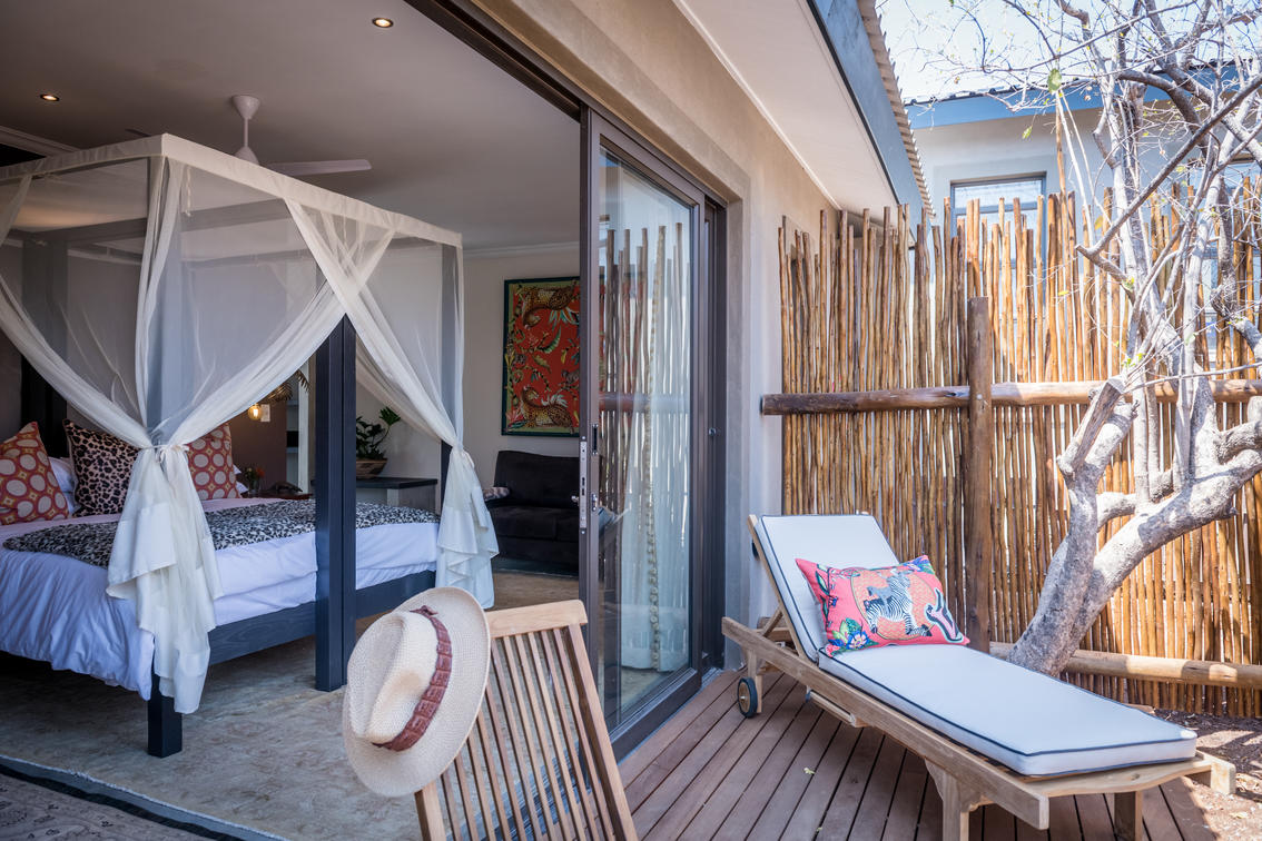 Your private deck is cosily enclosed and raised above a succulent garden, these rooms get a beautiful golden glow in the evenings. All feature a king size bed and the bathroom has a separate bath and shower. There is a passage leading from the main lodge to both Honey Badger & Nyala but there are also private entrances to each of these rooms. Each of these rooms has an individual touch, bringing an 'Out of Africa' feel and inspired by African and Asian aspects.