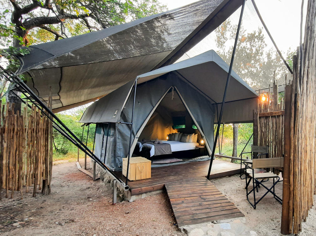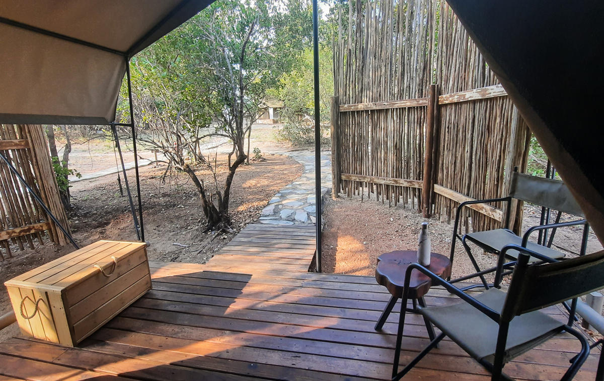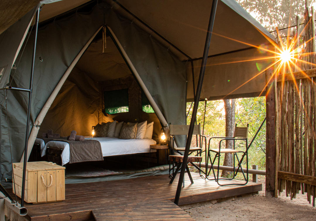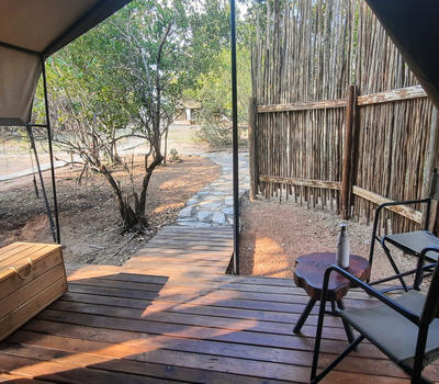 For added comfort, all tents are fitted with a fan, ensuring a cool and pleasant environment during warmer bushveld days and nights. Each tent also offers a private deck with outdoor furniture, providing a peaceful space to relax and enjoy the surrounding bush.