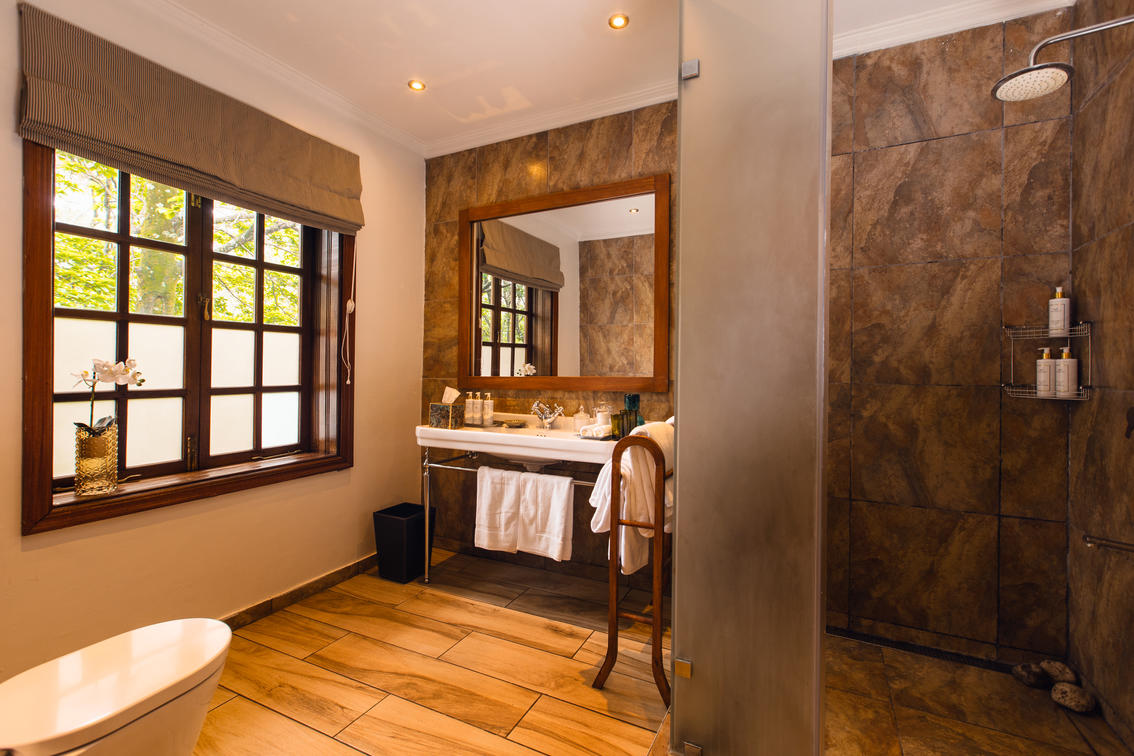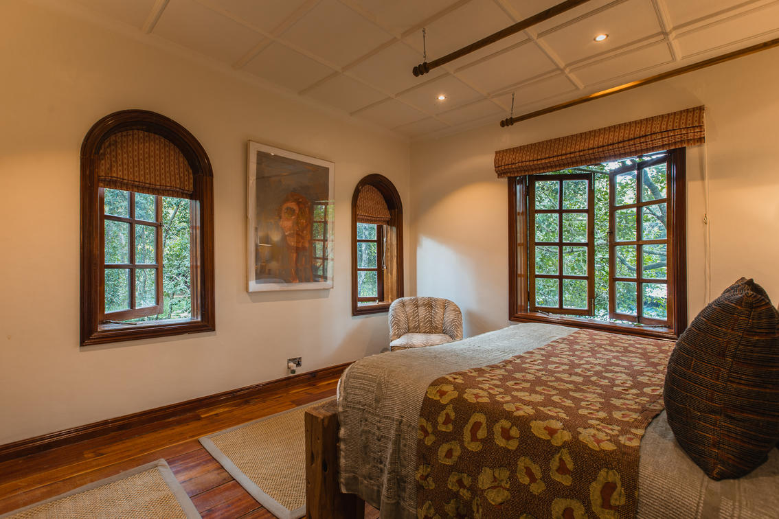 This room forms a small private suite at the end of the corridor and features a king size bed with views of the tree canopy. It has a separate ensuite bathroom with a large rain shower. This room cannot convert into a twin.