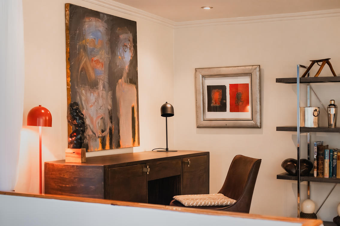 The master bedroom features a super king size bed as well as a large daybed, walk-in wardrobe and private outdoor veranda with stunning forest views. The ensuite bathroom is beautifully finished with wood panelled walls and complete with a large shower and separate bathtub. This room cannot convert into a twin.