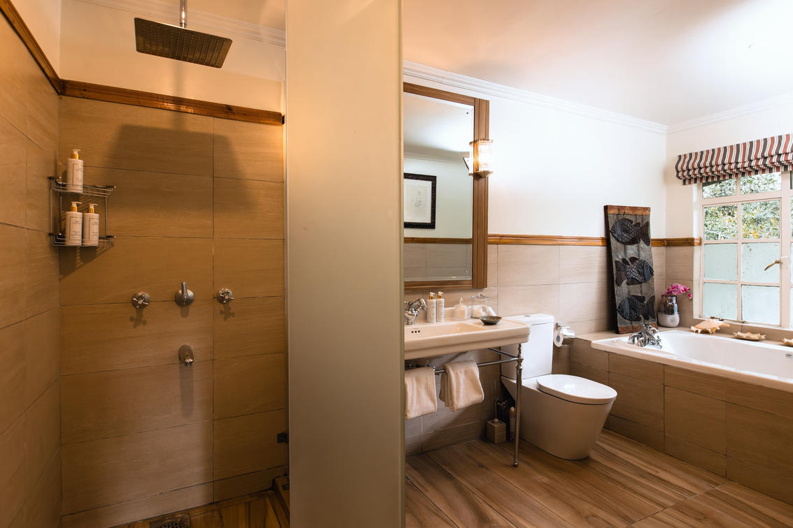 This room features a king size bed and ensuite bathroom with a rain shower, separate bathtub and views overlooking the kitchen garden. This room cannot convert into a twin.