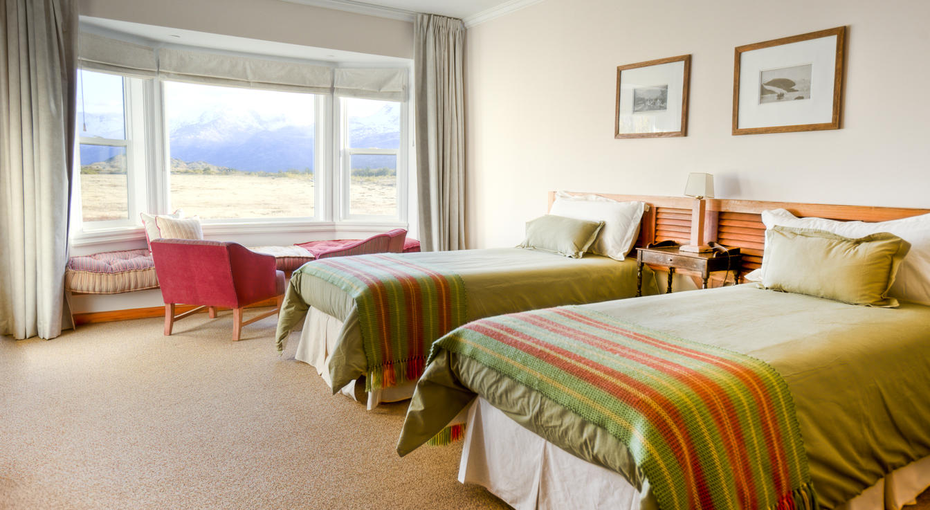The estancia has a total of 20 rooms distributed in 5 cabins or villas with 4 private rooms. Each one has been assigned a name based on aspects that highlight the environment in which Estancia Cristina is located: Mountain, Steppe, Forest, Fishing and Family. They have a shared living room with wooden floor; a comfortable and relaxed space where you can rest after returning from each activity, during the day or before your departure.