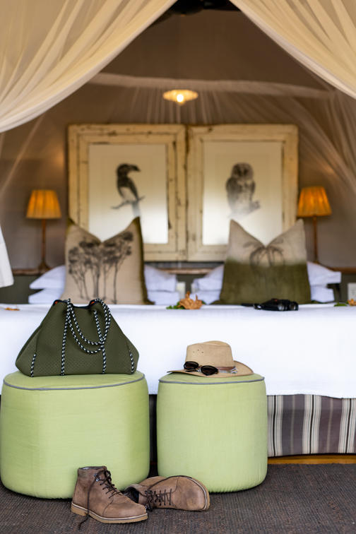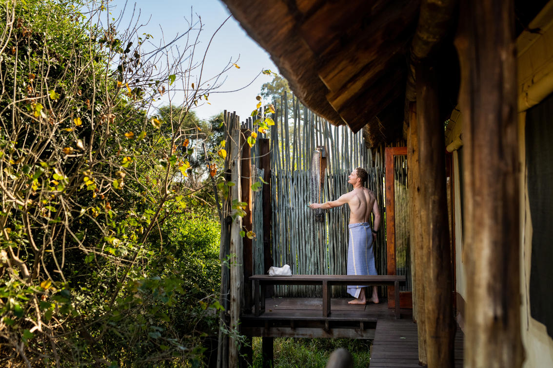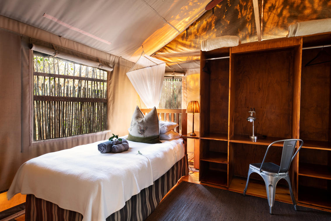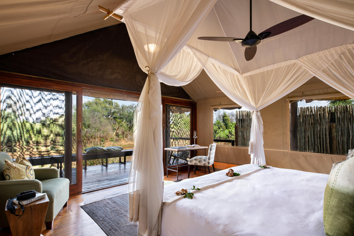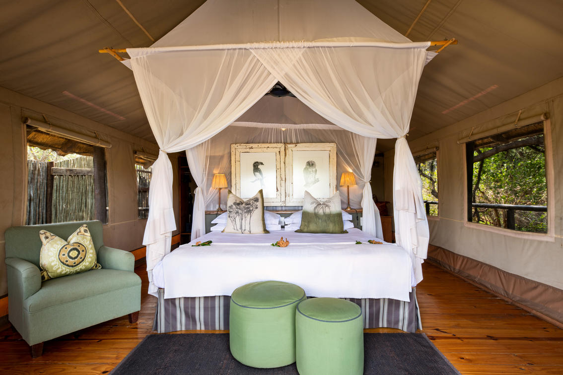 Luxury tent with 1 king size bed (twin beds on request) with en suite bathroom.