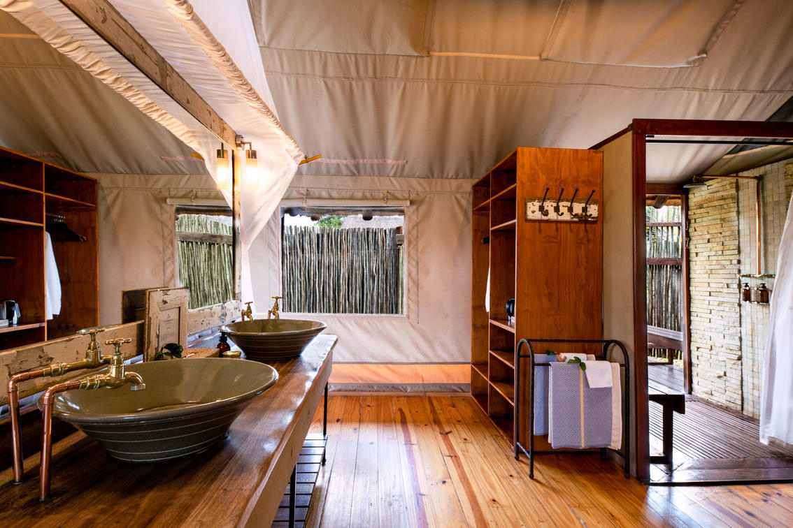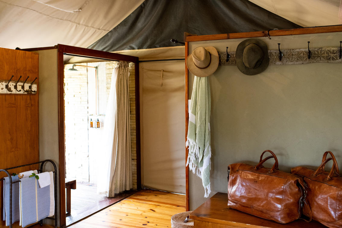 Luxury tent with two rooms, (1 king size bed, 2 single beds) with en suite bathroom. These units have an extra bedroom inter-leading to the main bedroom.