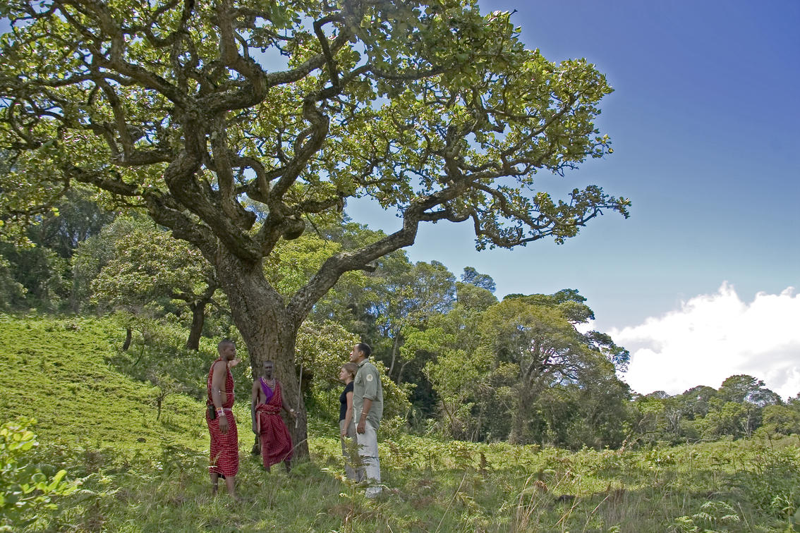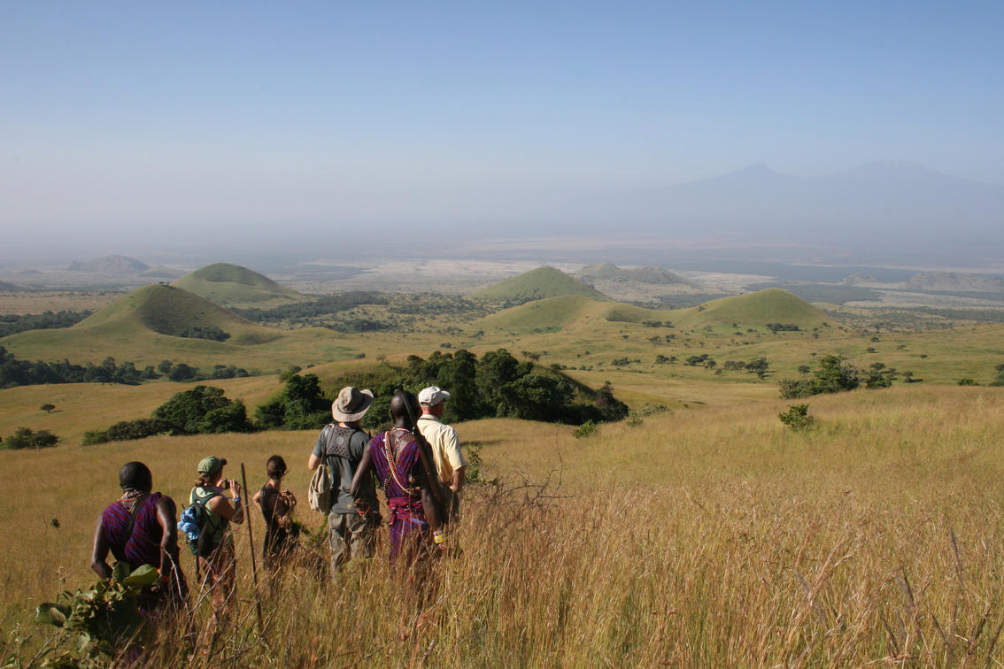 Take a longer day hike across the hills and plains, accompanied by your experienced Maasai scouts, learning to read the signs of the animals and hearing how the landscape was formed, crossing over ancient lava flows and ending in a tented camp under a baobab tree for the night. Or, best of all, take the rarest of walks up into the Green Hills and through the Chyulu Cloud Forest: wild forest hogs, rare Turaco birds, huge silver-cheeked Hornbills, antelope, elephant…all under the cool shade of giant strangler fig trees that rival the strangest most mystical trees in the world.