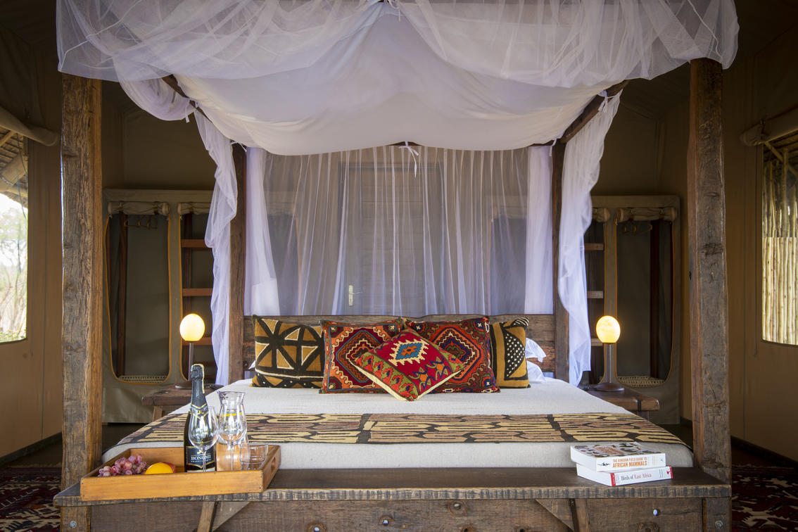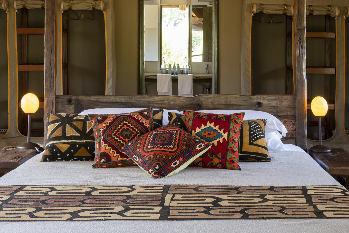 Each Quadruple Tent, for a family or group, contains four single beds with mosquito nets, bedside lighting, lots of storage space, and a well-appointed en-suite bathroom.