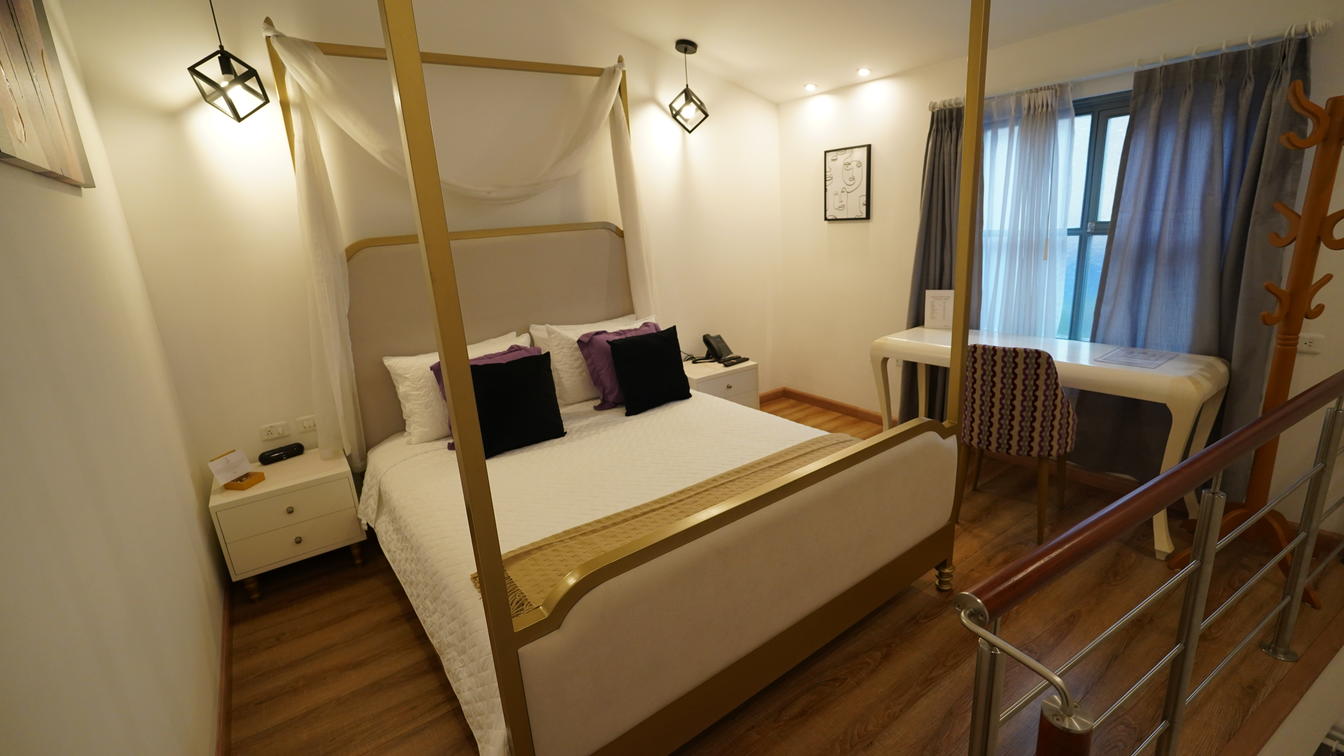 Start your mornings with an exceptional view of Quito's Historic Center directly from your balcony. On the second floor, in a suite that allows you to enjoy luxury and comfort as well as peace and quiet SIZE: 70 square meters CAPACITY: 2 people, you can include sofa bed maximum 3 people EXPLORE YOUR ROOM