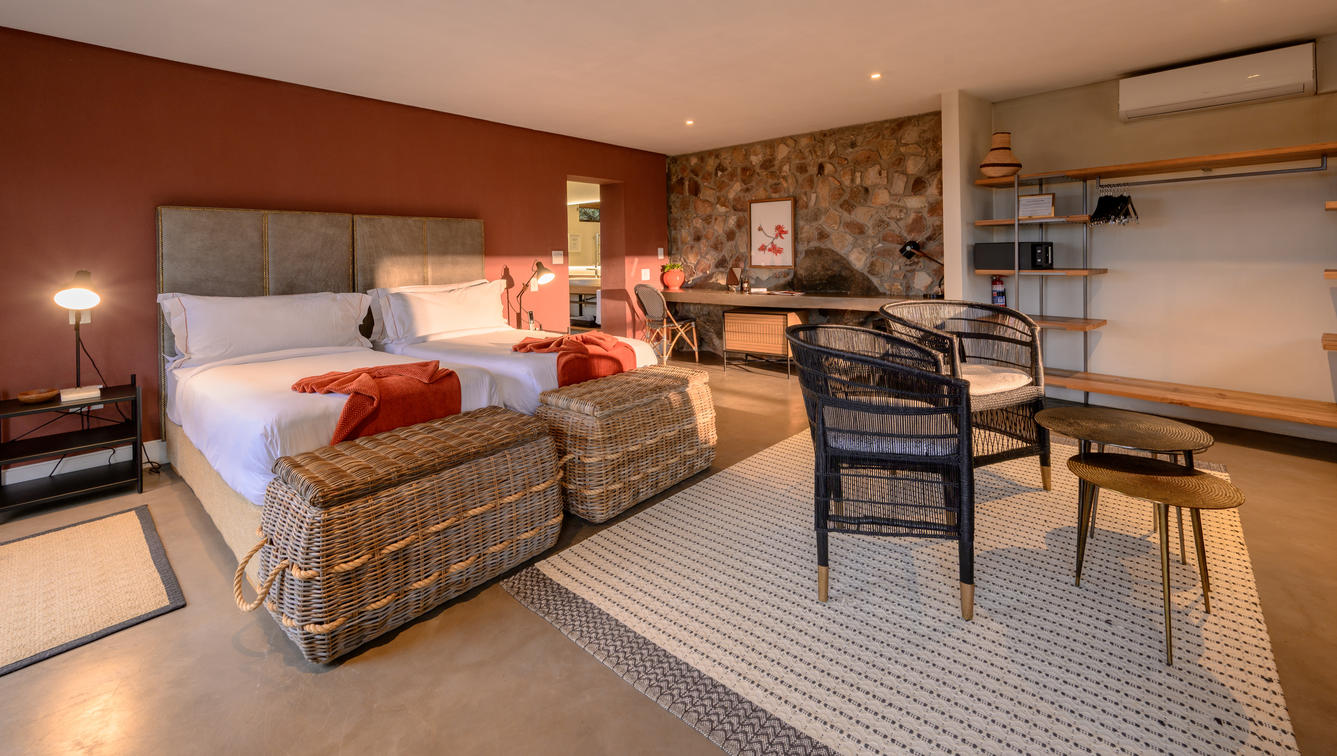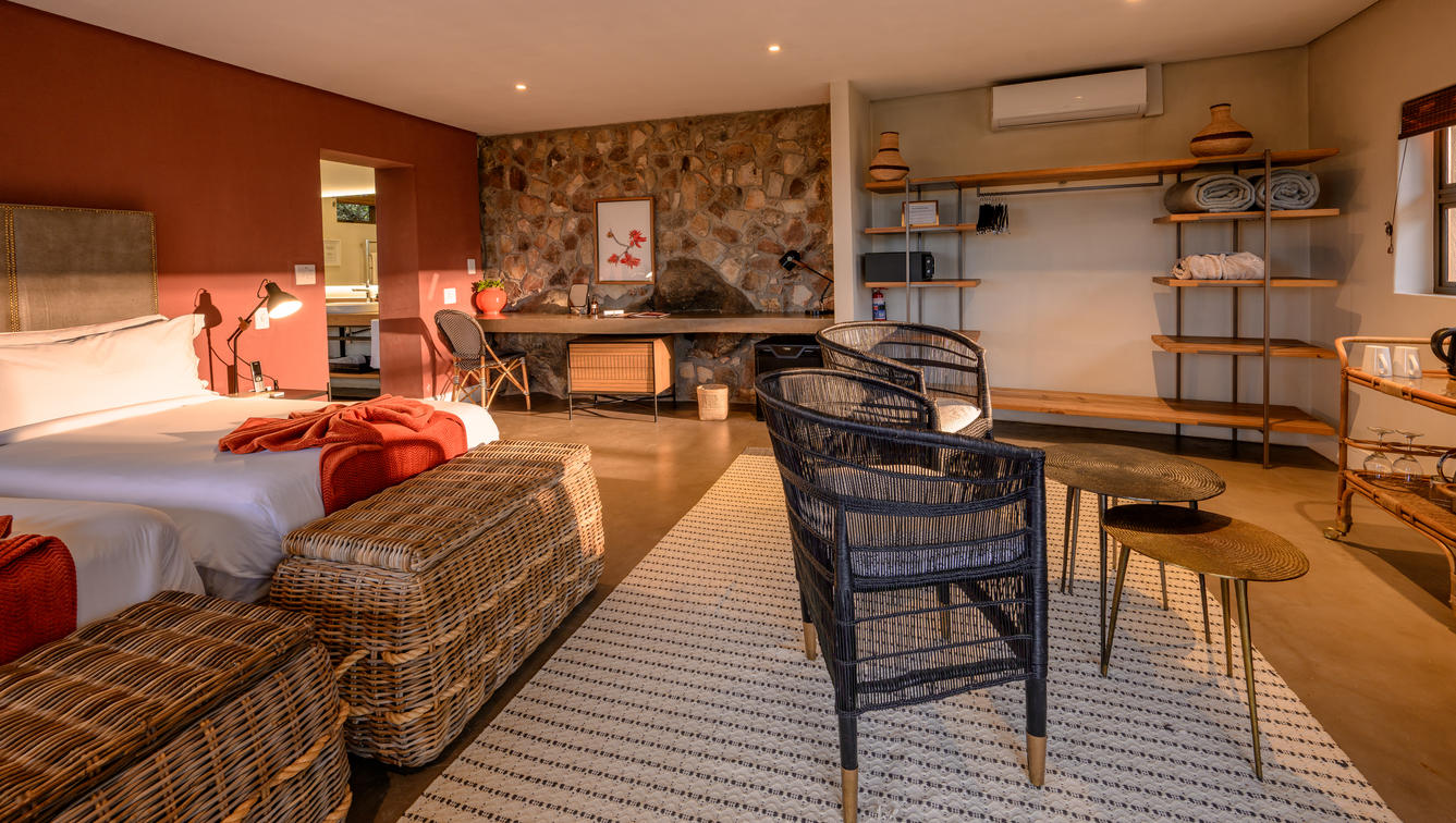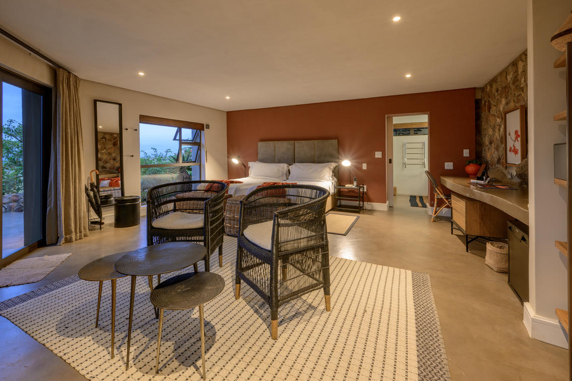 Zulu Rock Lodge offers two Deluxe Suites, ideal for couples who prefer to be close to the main lodge and pool. Each suite has a private patio with an outdoor fire pit, providing the perfect setting to unwind after an exciting day at our bush lodge accommodation.