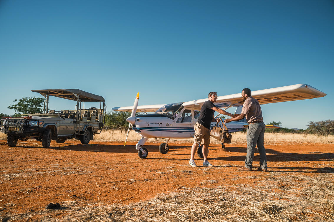 We depart from the lodge or the camp early in the morning to explore this magnificent Private Reserve on foot. Rusks and Coffee are served before we depart. We walk along dry riverbeds to learn the skill of tracking animals and to gain knowledge of the Little Big Five living in this unique ecosystem. Endemic birds like the Damara Hornbill, Hartlaub’s Francolin, and White-tailed Shrike, or rare sightings in this region such as an African Jacana, Saddle-billed, or Woolly-necked Stork, can be observed.