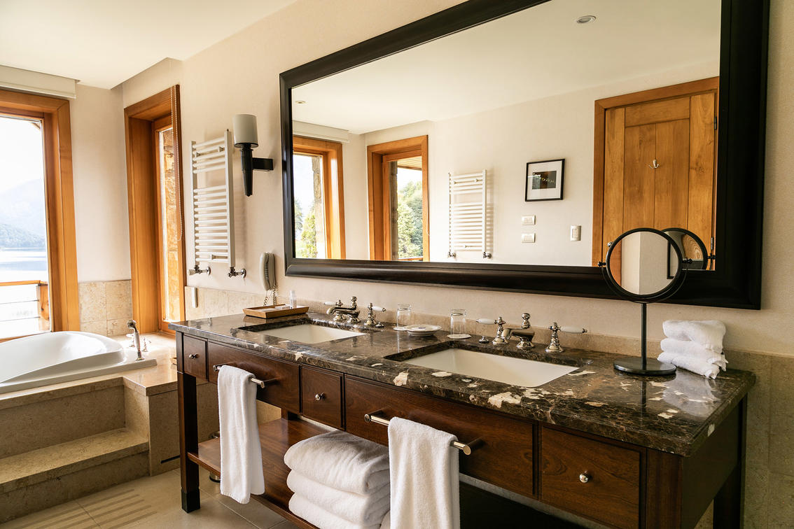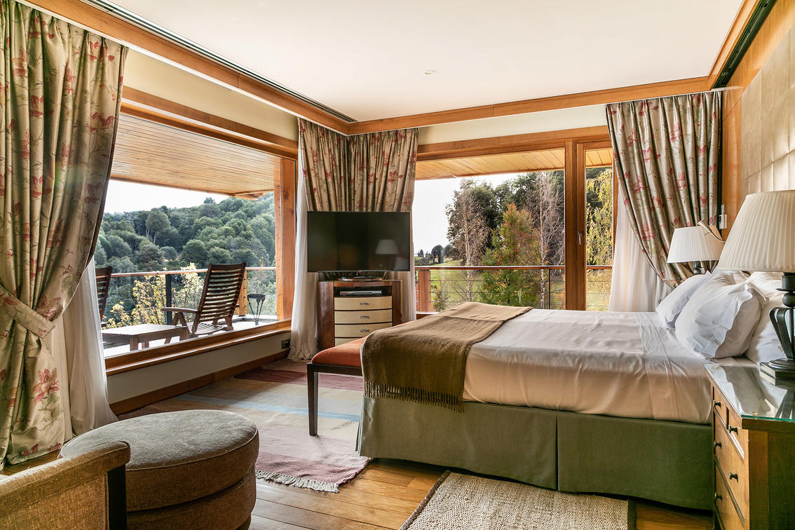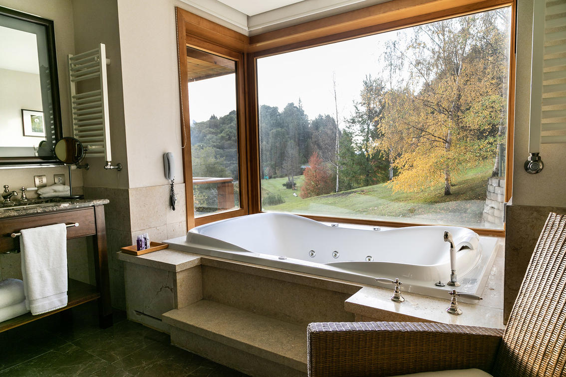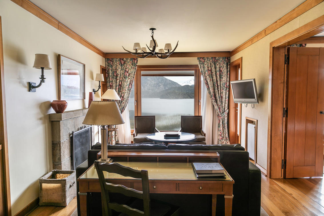 Large suite, with an incredible double jacuzzi in the bathroom, living room with large windows and impressive log fireplace, air conditioning in both rooms and balcony terrace. Our suites allow you to appreciate Lake Moreno and Cerro Tronador in all their splendor from each window (approximately 63 m2).