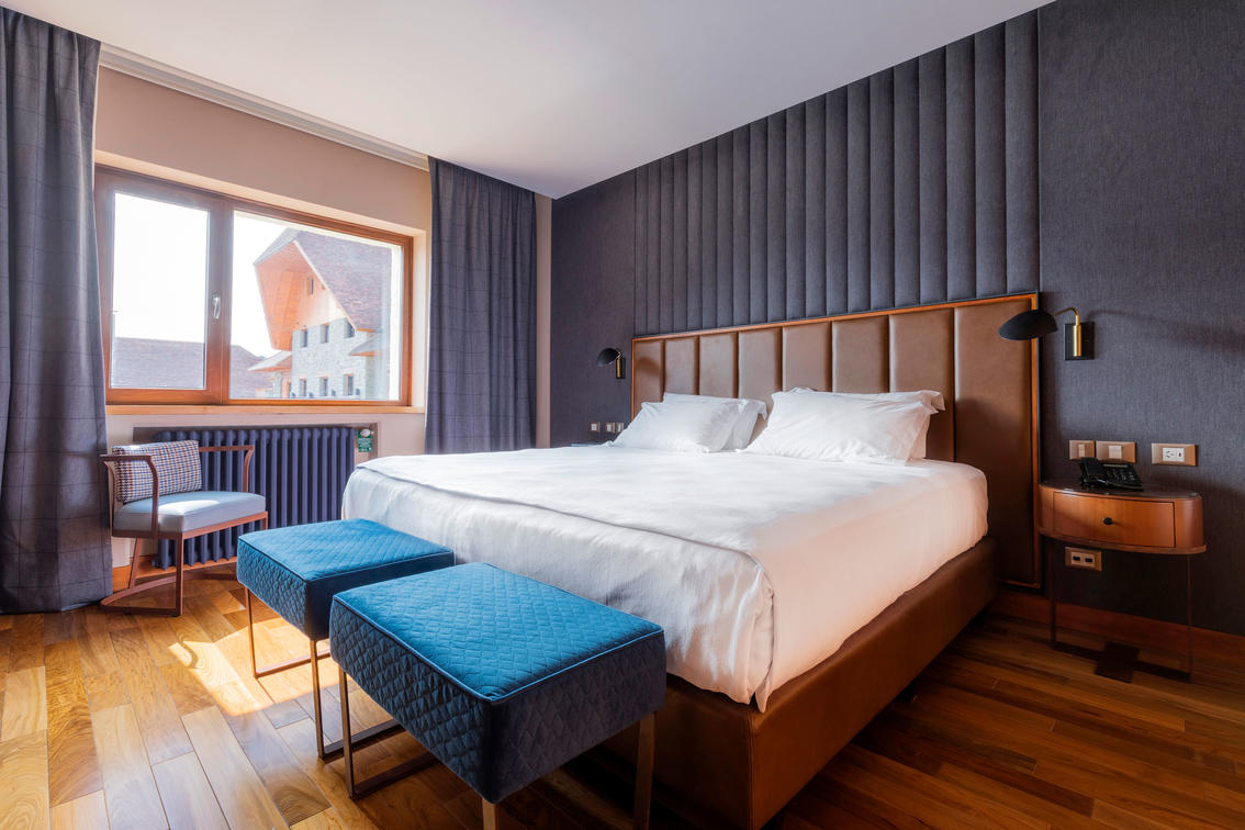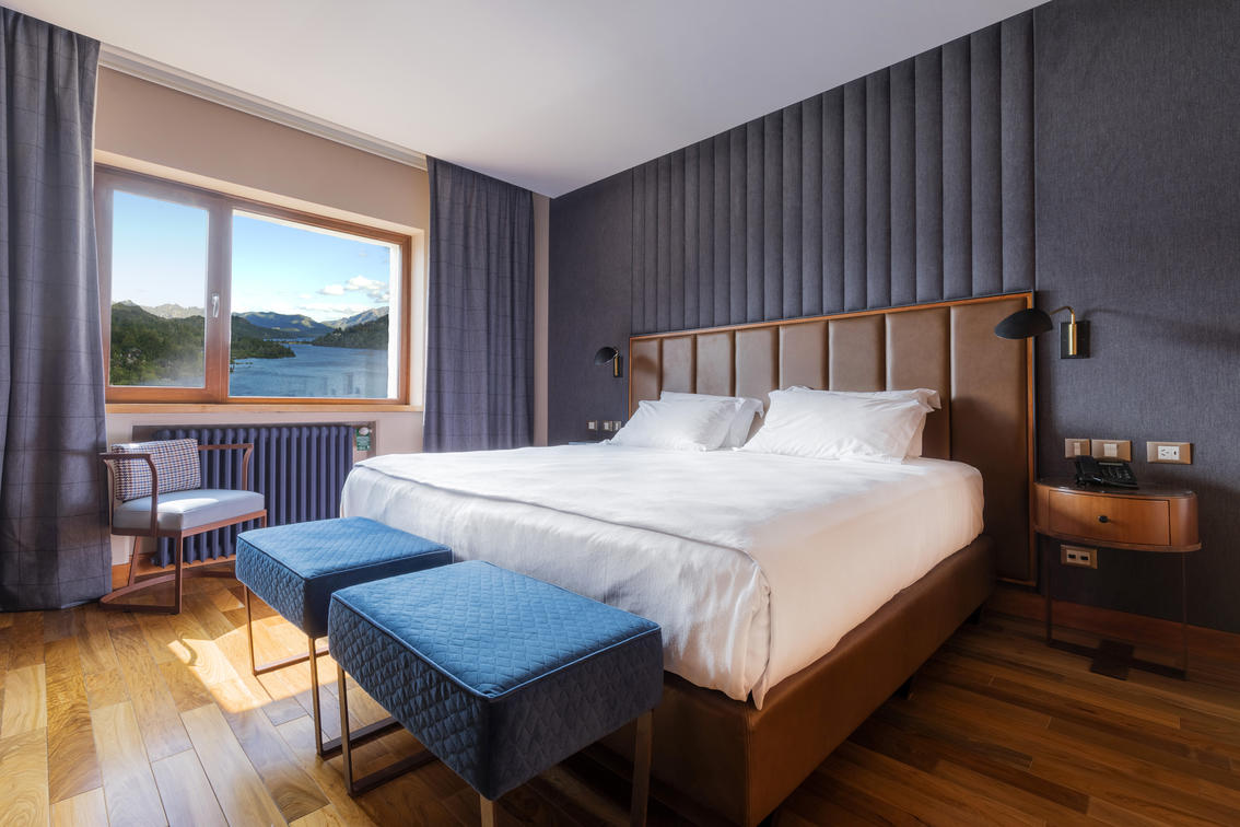 Room in an emblematic Bustillo building with views of Lake Nahuel Huapi or Lake Moreno (approx. 21 to 23 m²). No air conditioning. The floors in the rooms may have carpet.