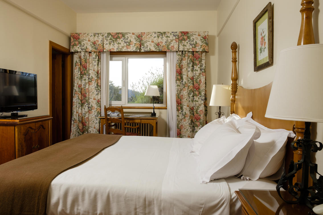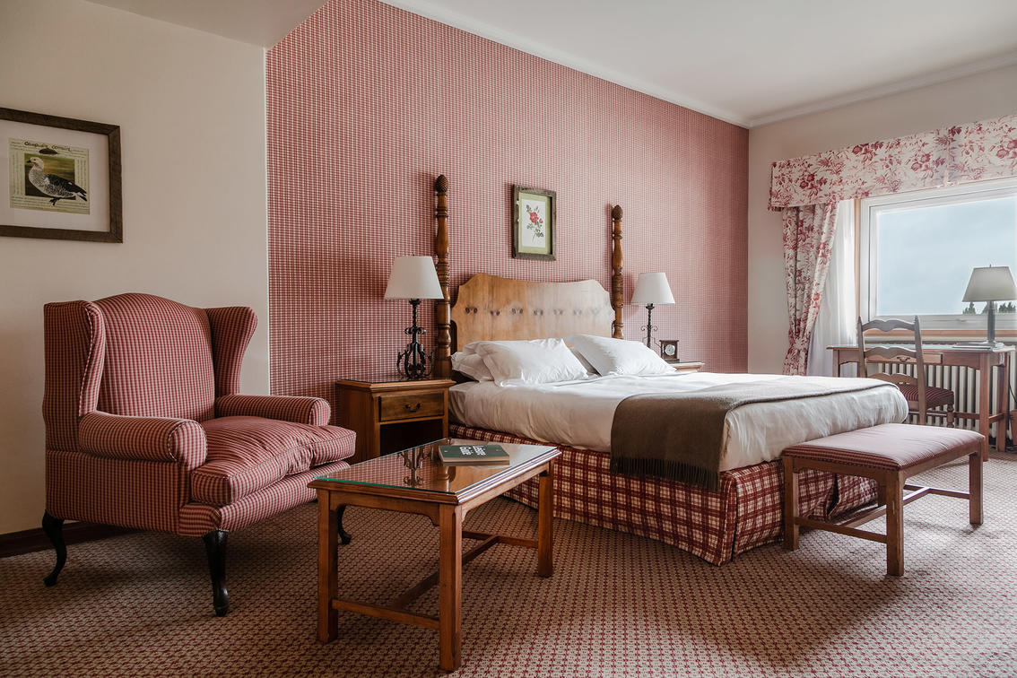 Room in an emblematic Bustillo building with partially obstructed views of the gardens or entrance to the Resort, some of them with possible access by stairs (approximately 22 m²). No air conditioning. The floors in the rooms may have carpet.