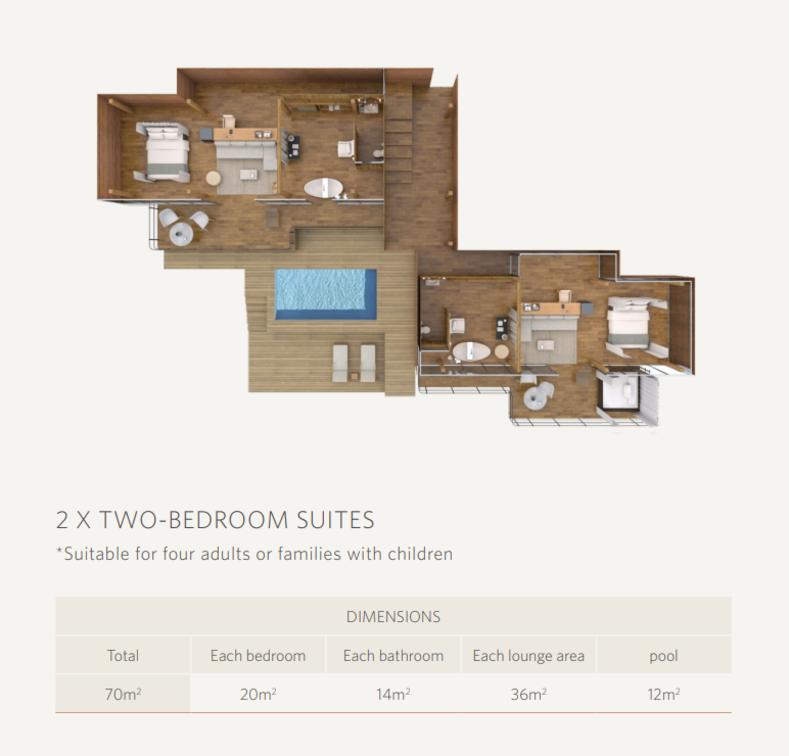 All suites are en-suite with an inside and outside shower, bath, mini bar and fridge, room safe, air-conditioning, overhead fans, direct dial telephones, game viewing deck with a day bed and a private plunge pool