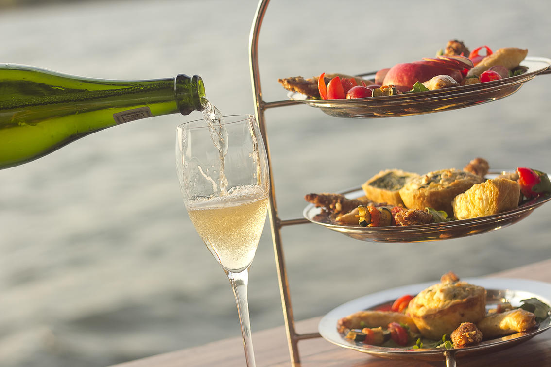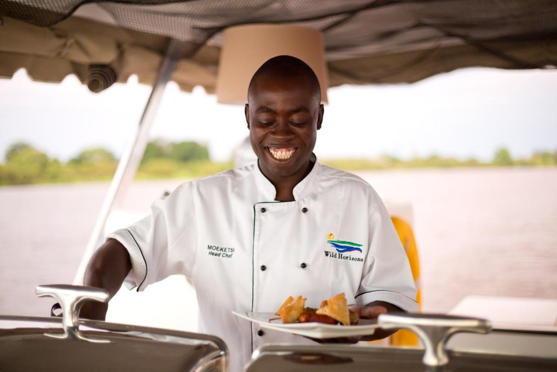 Guests relax in the lush furnishings of this modern and contemporary vessel, enjoying lavish snacks, wine, cocktails and sparkling wine, as they coast up-river taking in the stunning scenery and surrounds of the upper Zambezi River.