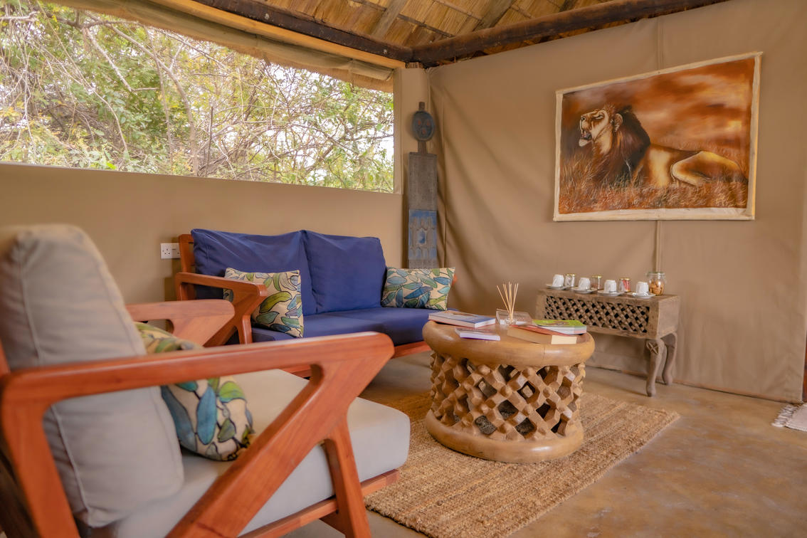 Nestled amidst the serene landscapes of Kafue National Park, the unit presents a unique blend of adventure and tranquility. The canvas walls of the tented chalet provide a canvas for the outside world to blend seamlessly with the interior, creating an immersive experience that allows you to feel both sheltered and connected to nature.