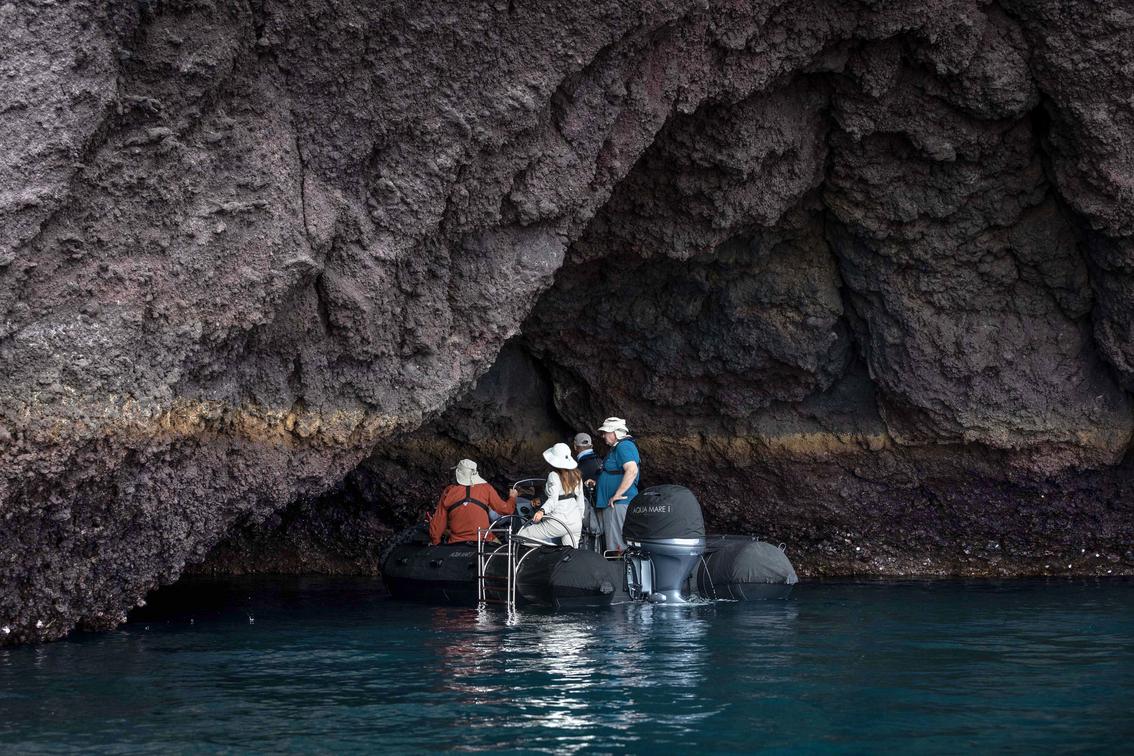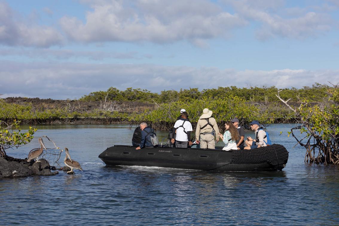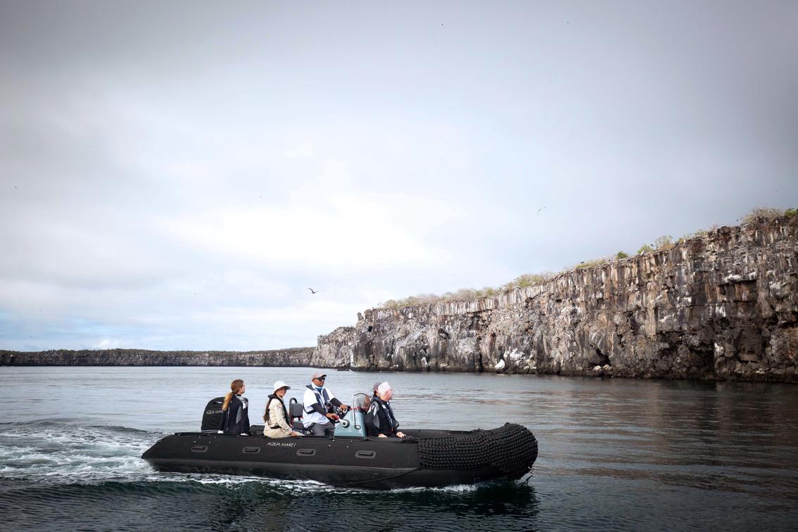 Aqua Mare is equipped with two military-grade black tenders that offer guests the most stylish and comfortable means of transport between the yacht and numerous visitor sites scattered throughout the Galapagos Archipelago. Landings on each site will vary between wet and dry, a terminology you will hear often from our guides while out on excursions. On a dry landing, guests can disembark directly on a dock or rocky surface without touching the water, while on a wet landing it is necessary to submerge your feet into the water to disembark on the shallow beach shores.